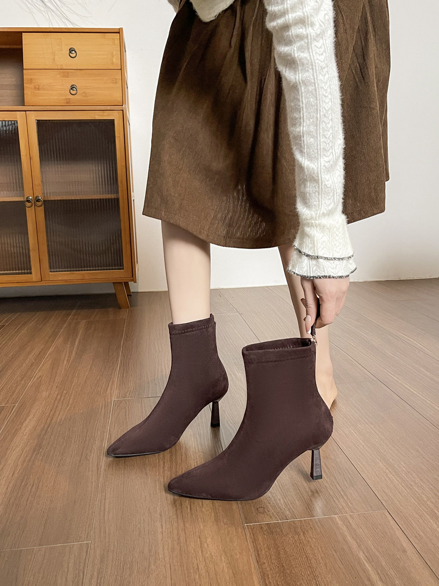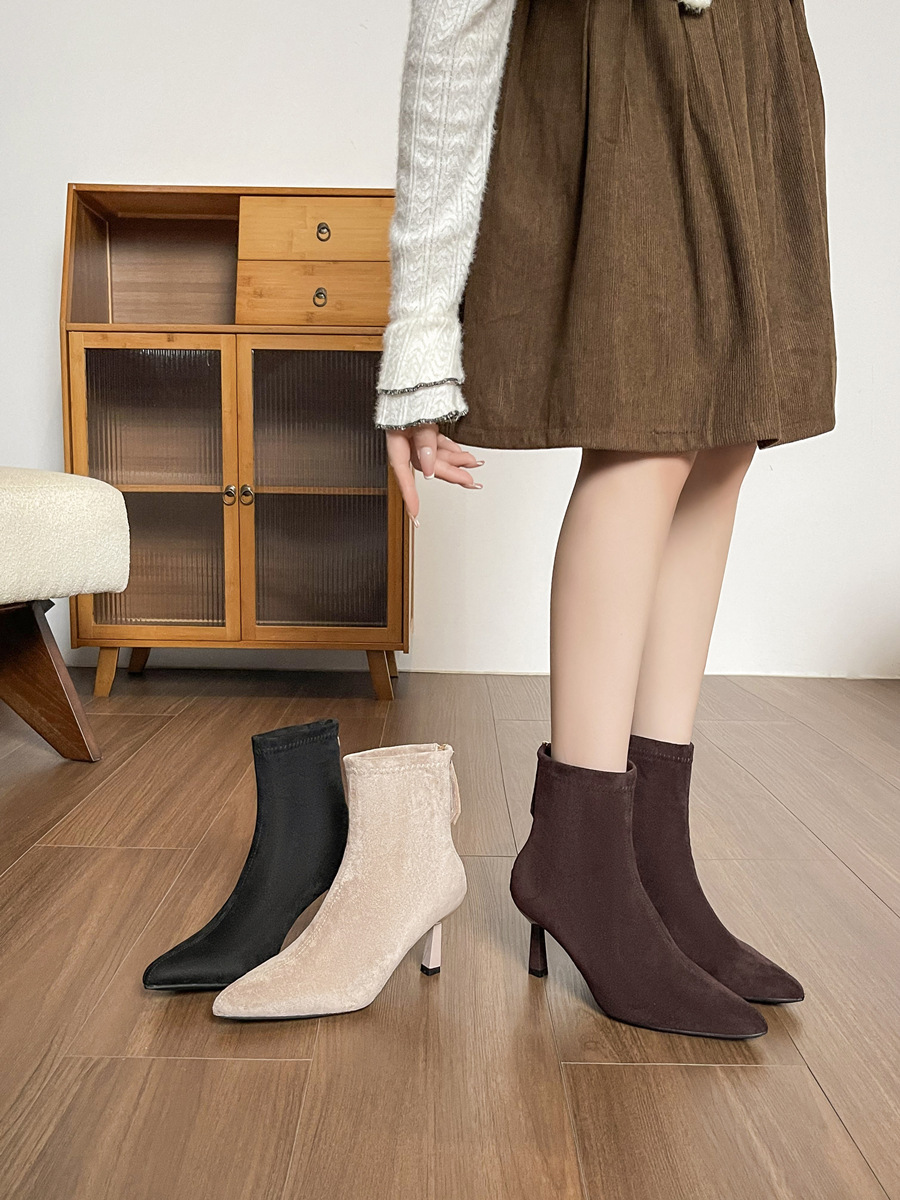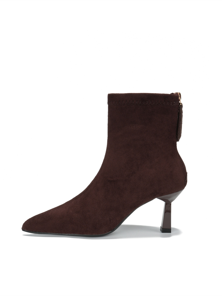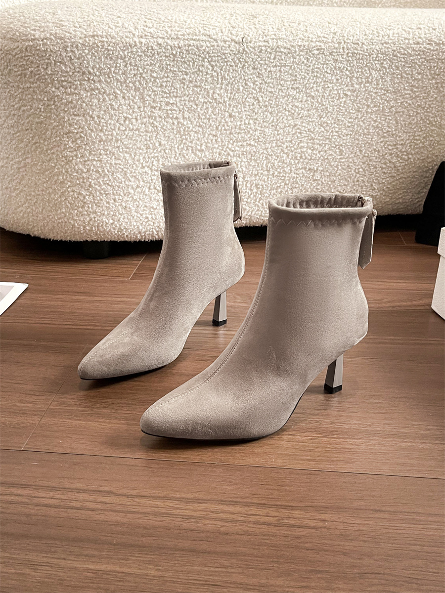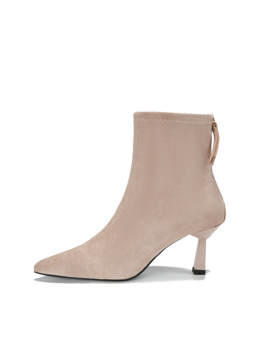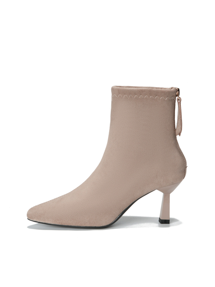 Популярные замшевые ботинки на каблуке 5.5 см с острым носком для женщин, комфортные короткие ботинки