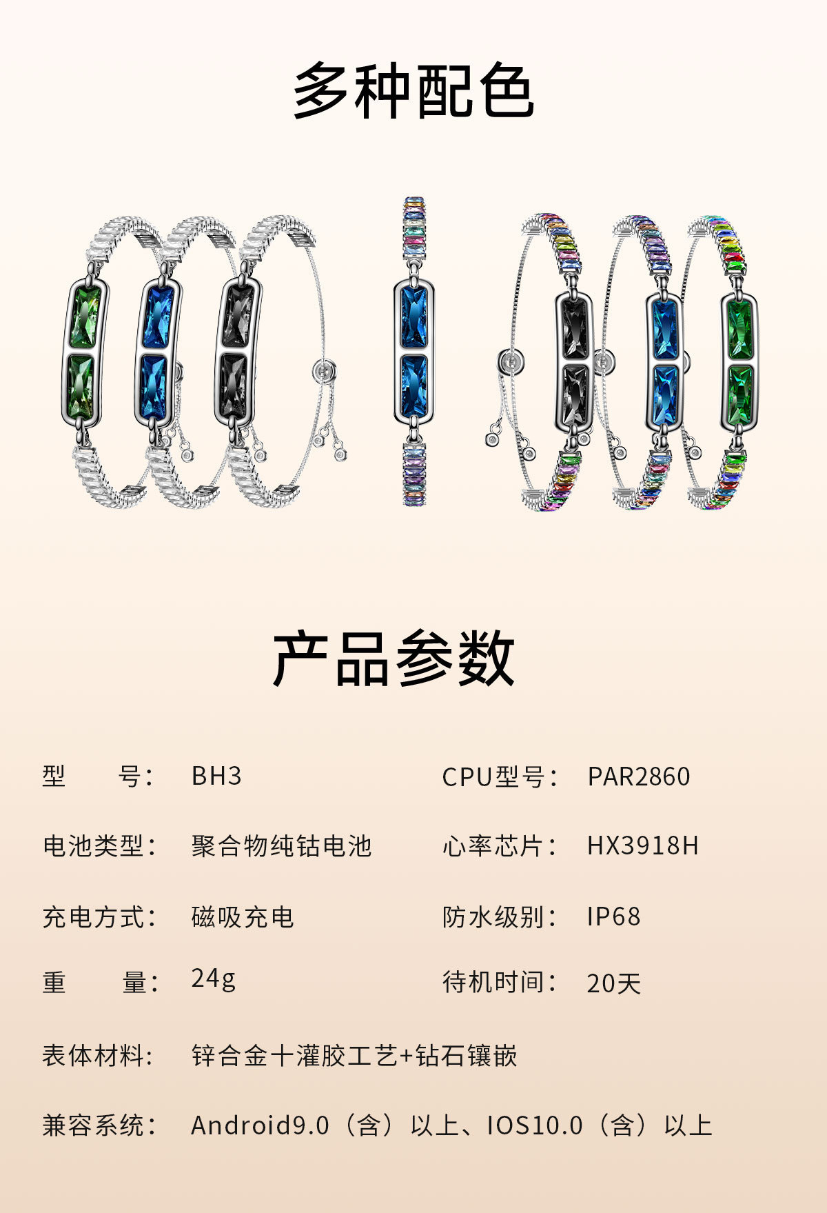 Кросс-бордерный новый смарт-браслет BH3 для женщин, измерение сердечного ритма, давления кислорода, сна, HRV, мониторинг женского здоровья
