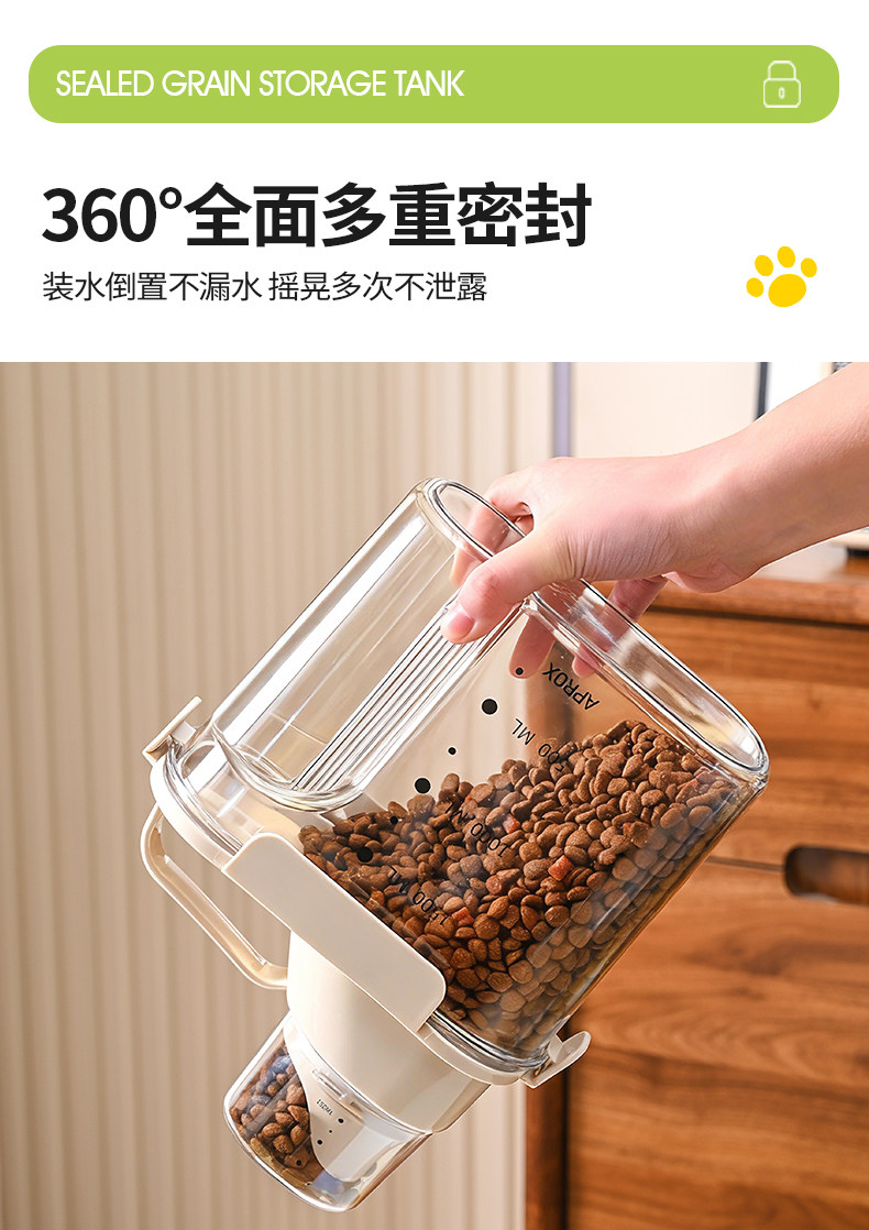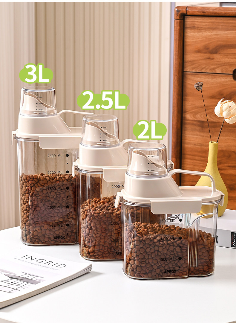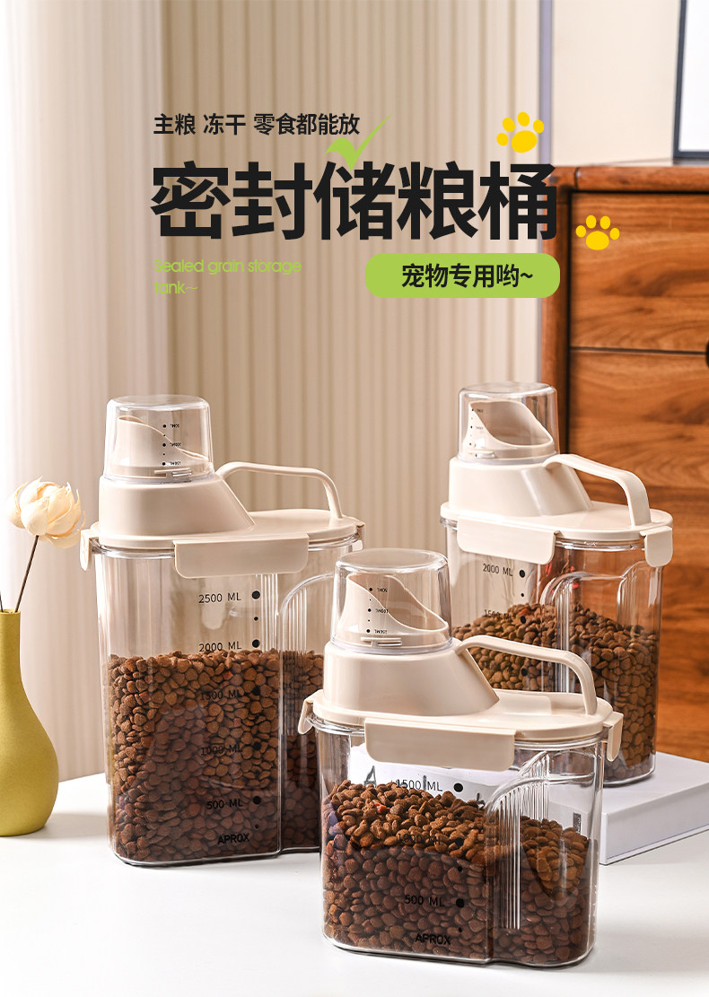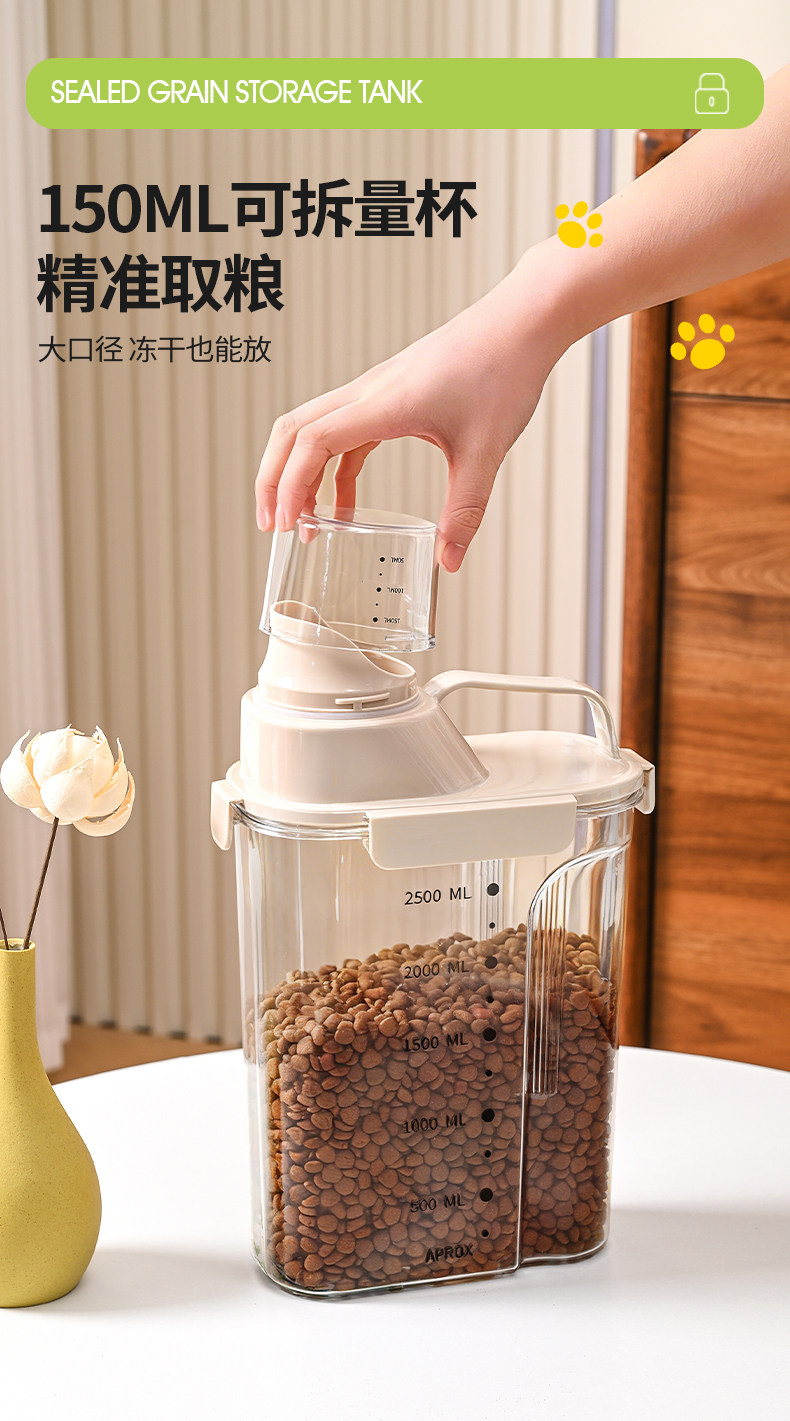 Бочка для хранения корма для кошек, герметичная банка для корма для собак, закуски для домашних животных, влагозащитная вакуумная бочка для хранения корма с мерным стаканом