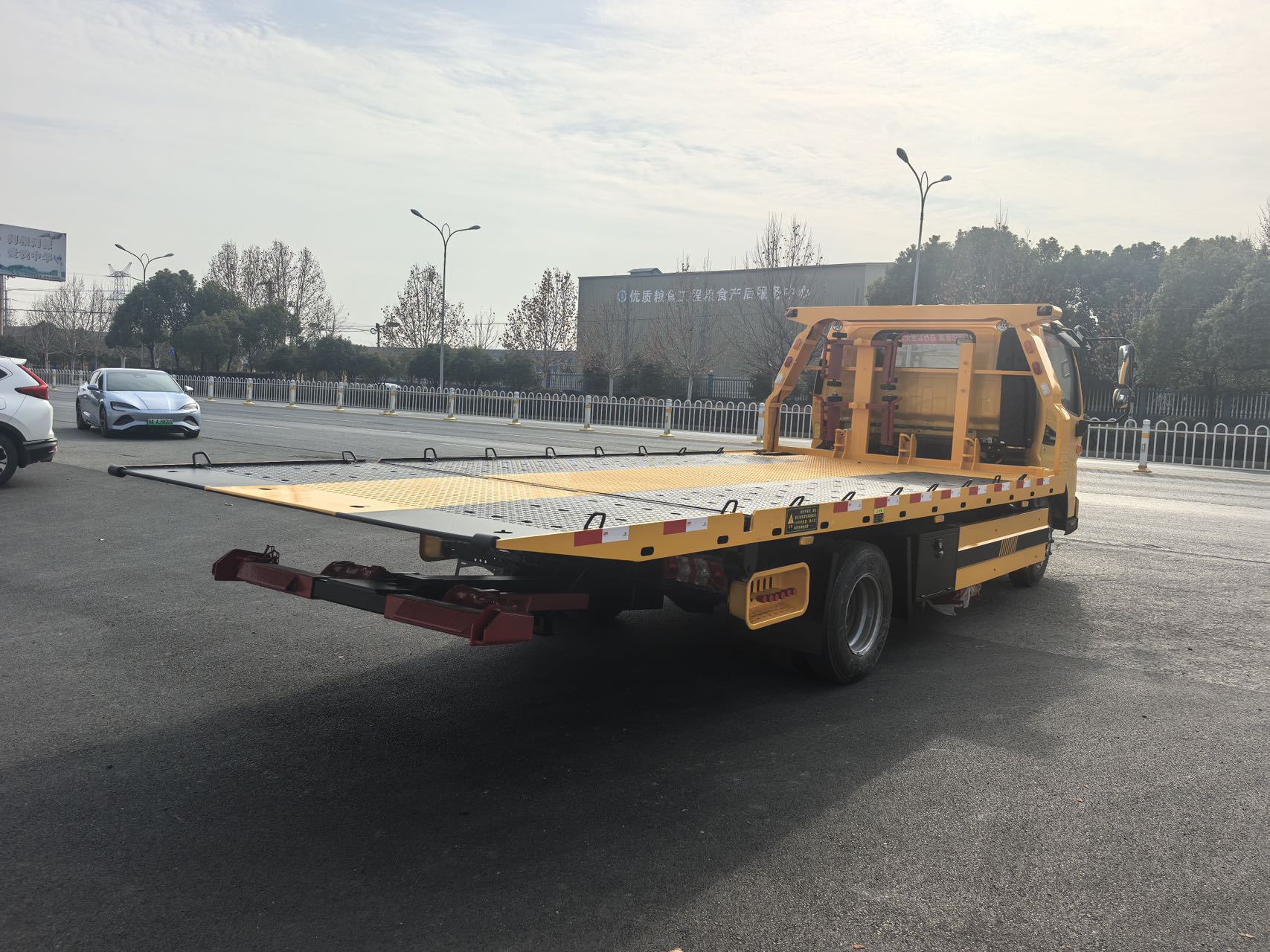 7吨板:一体式尾部液压翻转板,5厚花纹板,可选平板下沉,实心钢板边框,板长5.6-5.8可选,板宽2.3-2.5M可选,10个厚滑道,平板加田字格加密,加竖寸,加厚双副梁,主油缸110,举升缸100,4吨卷扬,加装后托臂,L型抱胎架一对,轮胎挡板2个,2个辅助小车,4根绑带,双钩,等其他标配