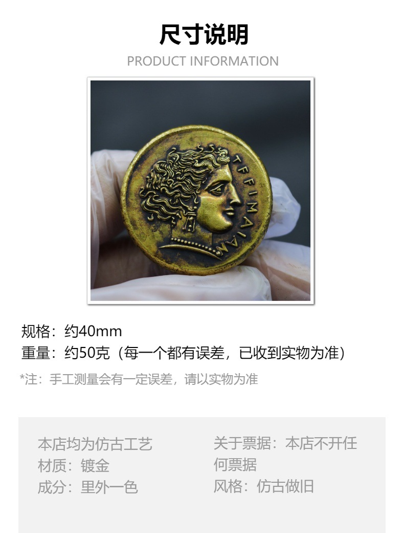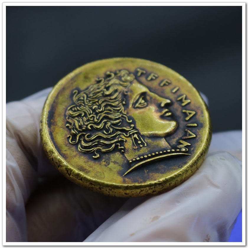 Древнеримская утолщенная юбилейная монета, латунь, позолота, антикварные изделия, сплошная золотая монета