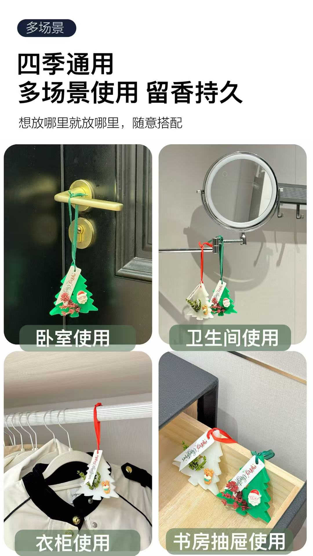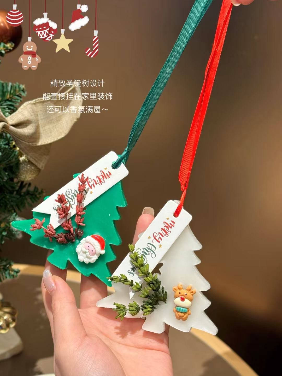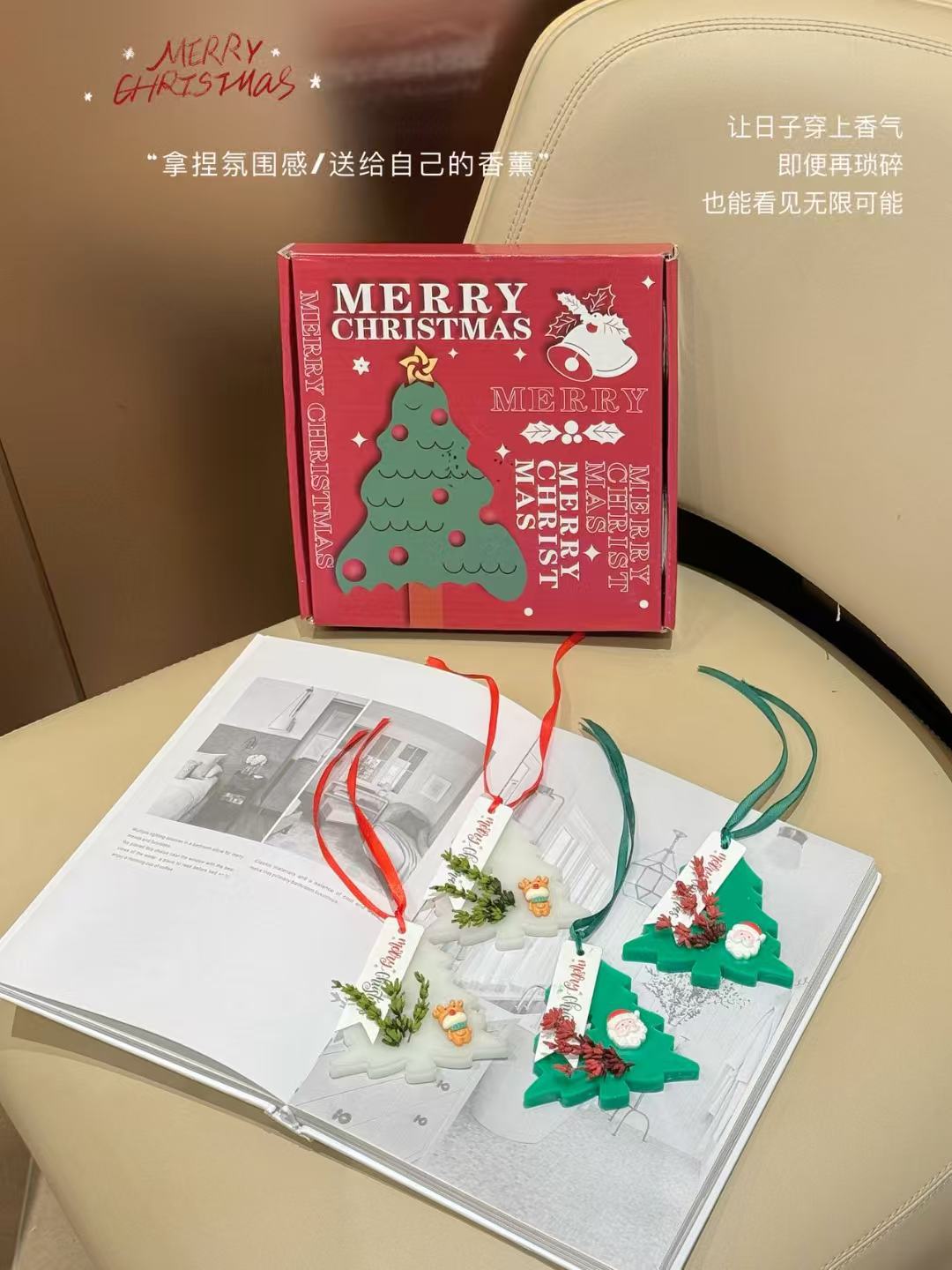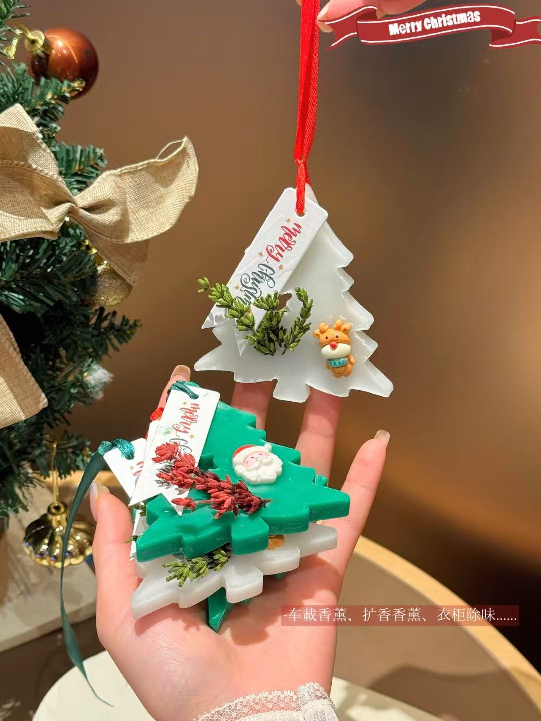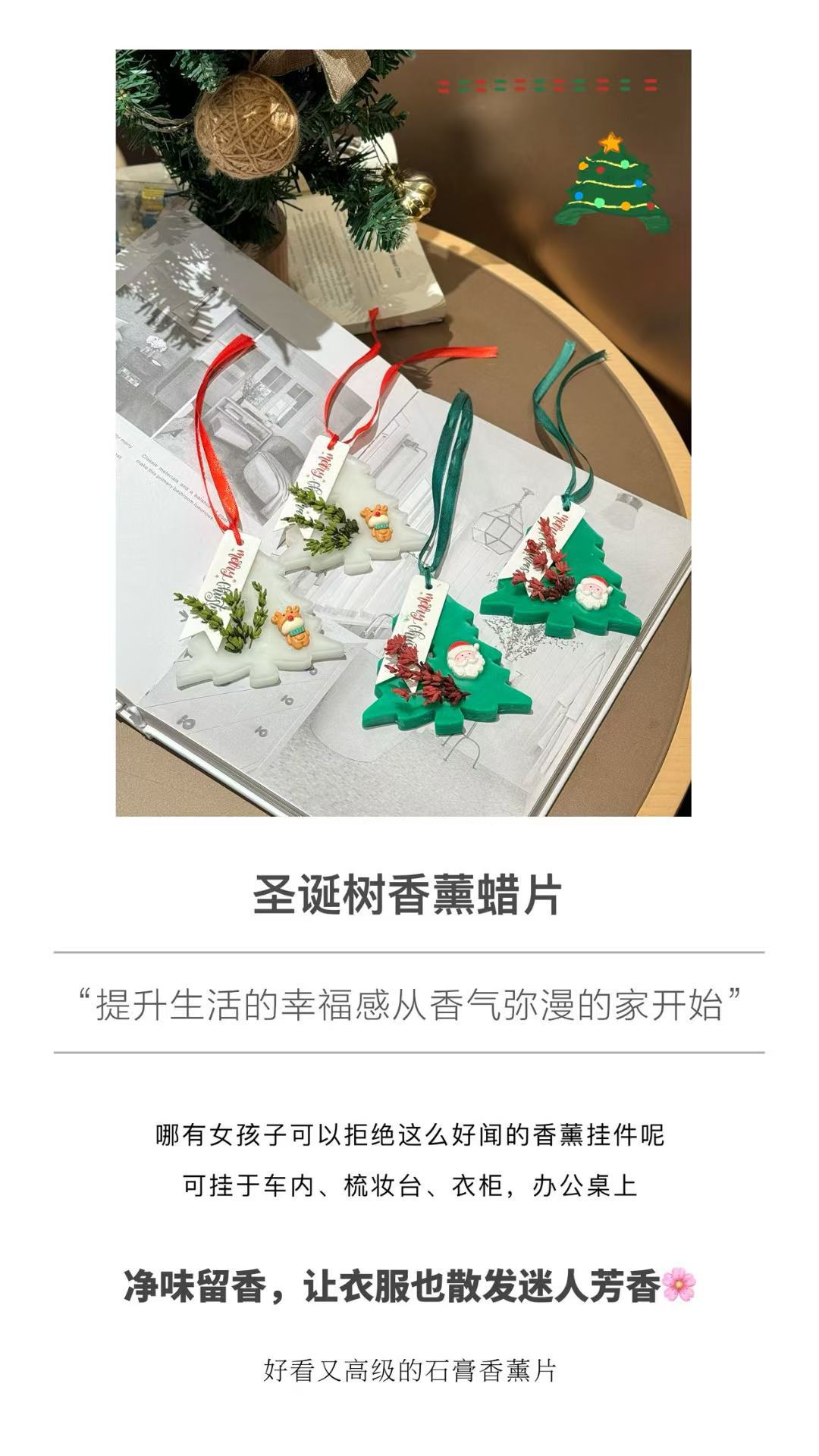Набор из четырех таблеток для ароматерапии рождественской елки 2025 года, подвеска для спальни и ванной, аромат для рождественской атмосферы