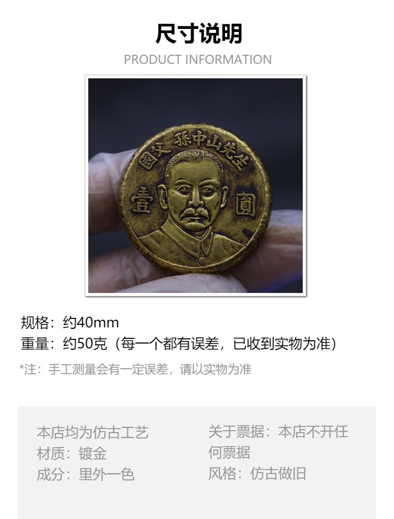 Антикварные изделия, юбилейные золотые монеты Сунь Ятсена, позолоченные сплошные монеты