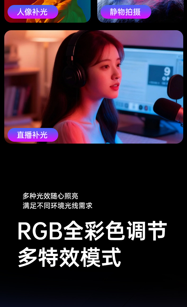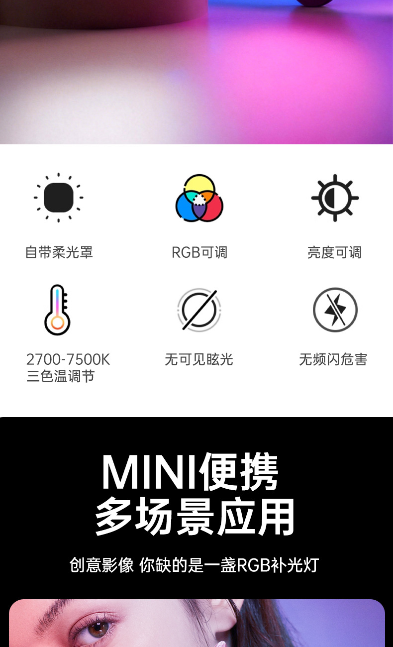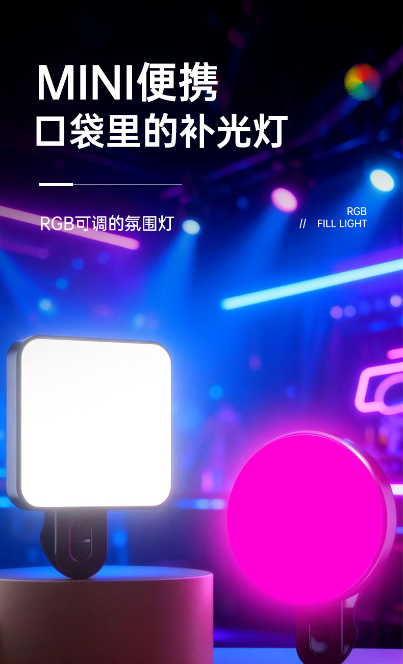 Мини карманный светильник для телефона с клипсой для стримеров, трехцветный RGB амбиентный свет, портативный свет для фотографии