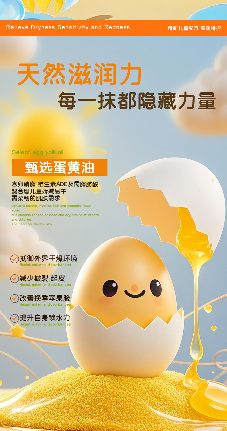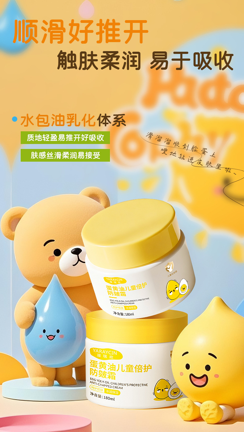 Крем для детей Yaruixin с маслом яичного желтка, двойная защита от трещин, 180 мл, увлажняющий и питательный крем для ухода за кожей детей