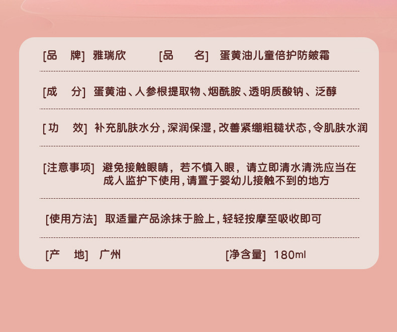 📦 | Yaruixin egg butter children's anti-crack cream 180ml | 1шт: ¥4.28, 1000шт: ¥3.98, 5000шт: ¥3.68 | 1000000 | 6150665207610 |