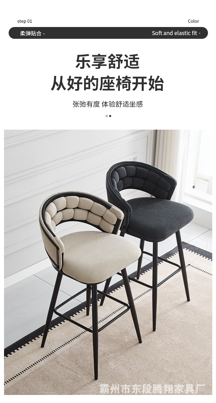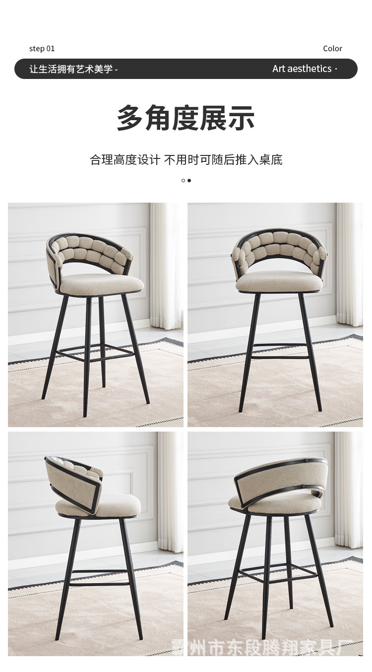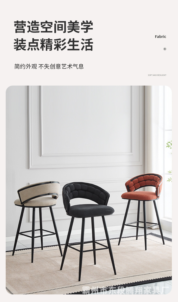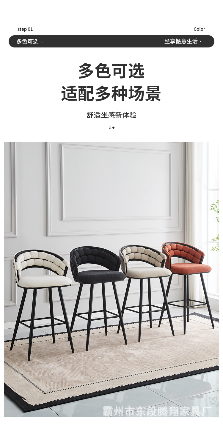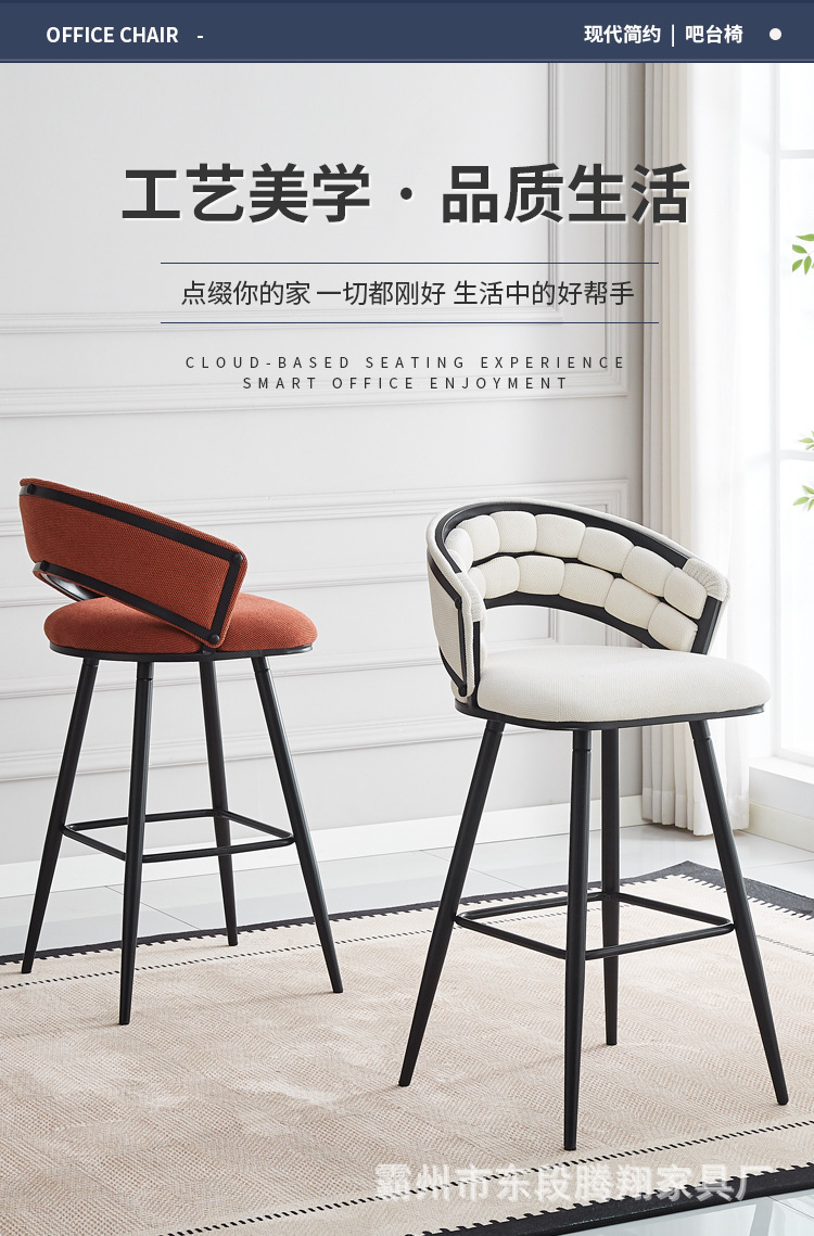 Роскошный барный стул с мягкой обивкой с ромбовидным узором, изогнутой спинкой, высокими ножками и контрастными цветами для домашнего использования