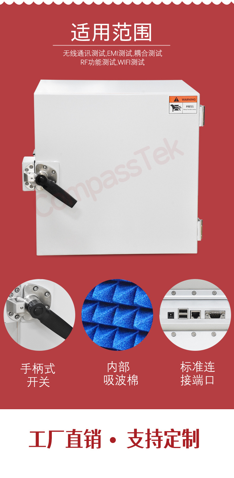 Использование продукта This shielding box is suitable for wireless communication testing, emi testing, coupling testing, rf function testing wifi testing
