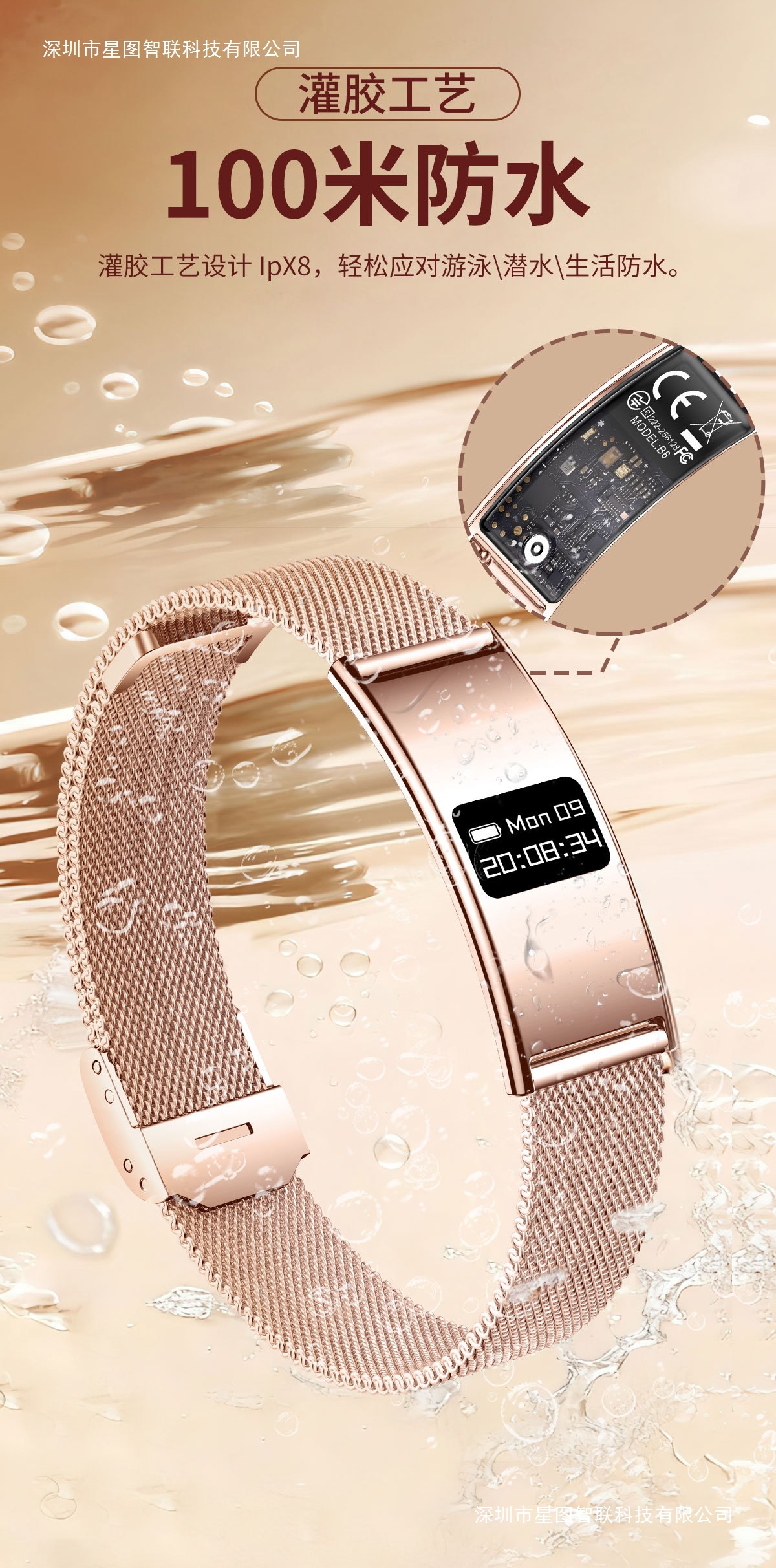 Умный браслет B8 для мужчин и женщин, доступная роскошь, мониторинг частоты сердечных сокращений и сна, водонепроницаемая модная модель