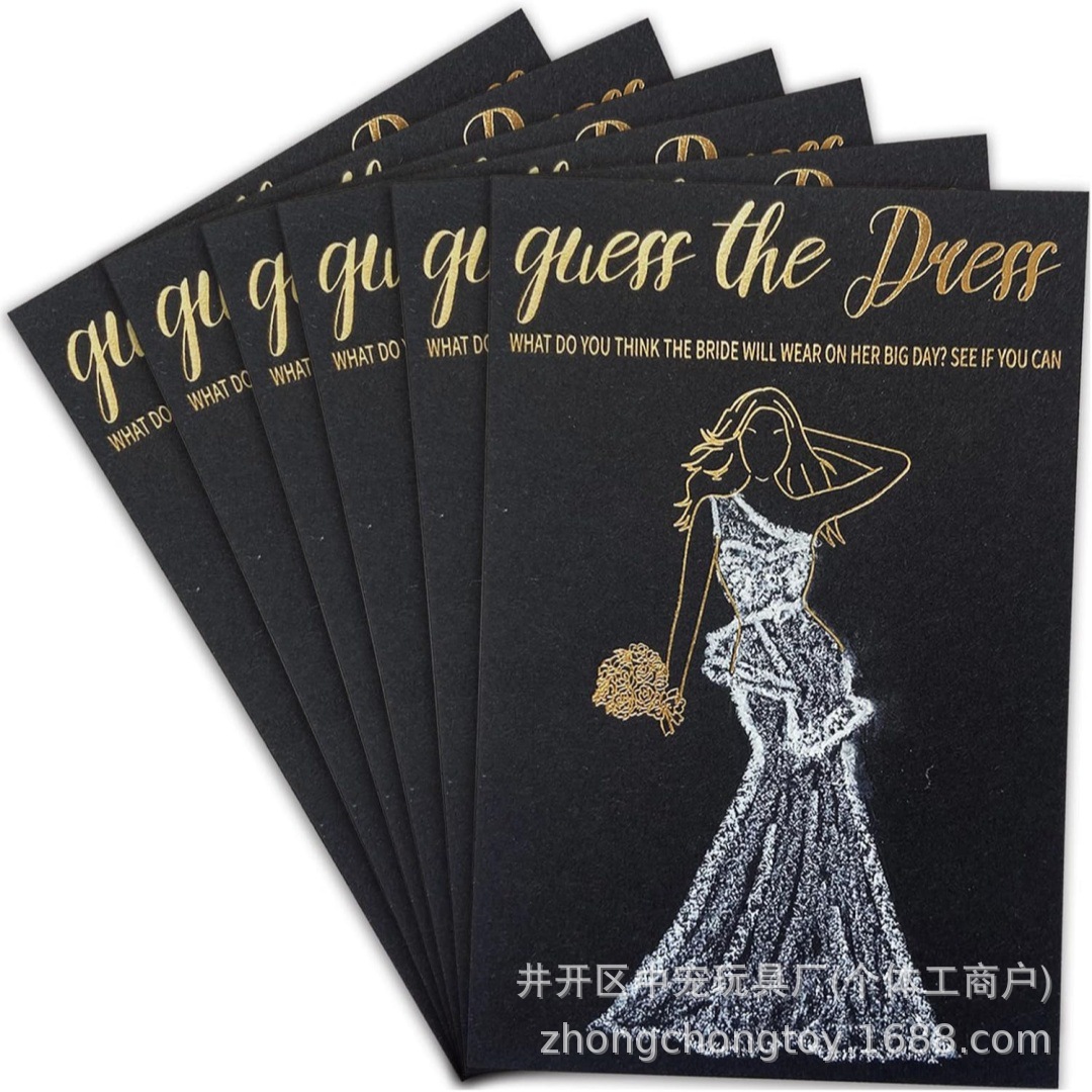 金箔印在厚黑纸上。猜猜新娘在大喜之日梦寐以求的婚纱会是什么样子!·非常适合家庭友好的新娘淋浴、单身派对或礼服设计。