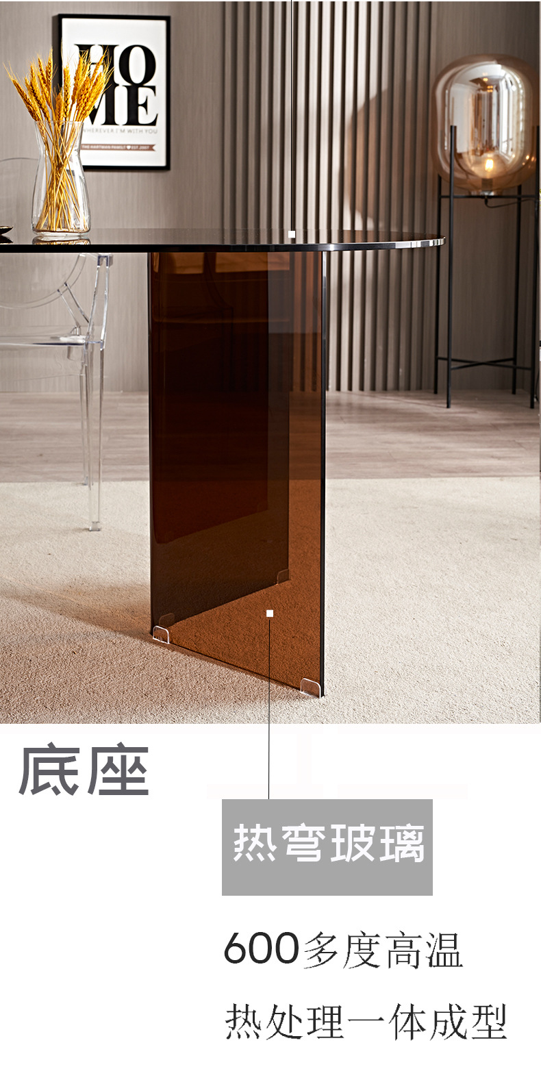 Немецкий новый модель 2026, минималистичный креативный стиль ваби-саби, простой коричневый стол из закаленного стекла, современный простой стиль