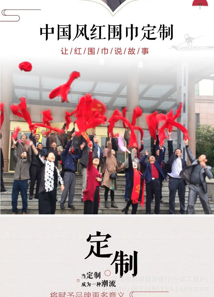 Китайский красный шарф с индивидуальной печатью логотипа, вышивка, открытие, ежегодное собрание, мероприятие, подарок в виде красного шарфа