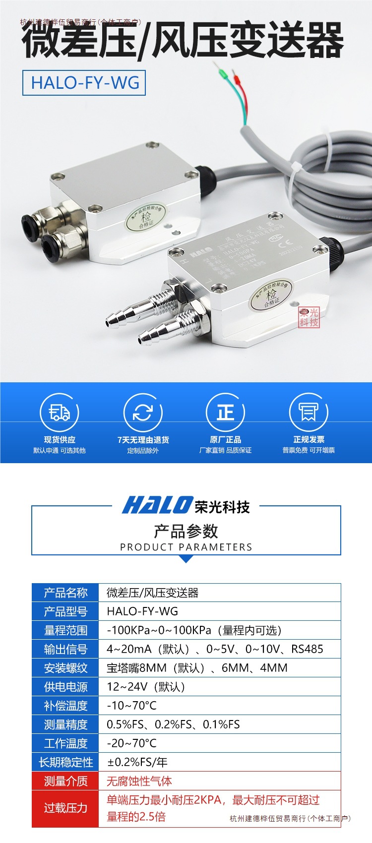 Halo-Fy-Wg передатчик давления ветра микро датчик дифференциального давления вентилятор давление воздуховода дифференциальное давление печи