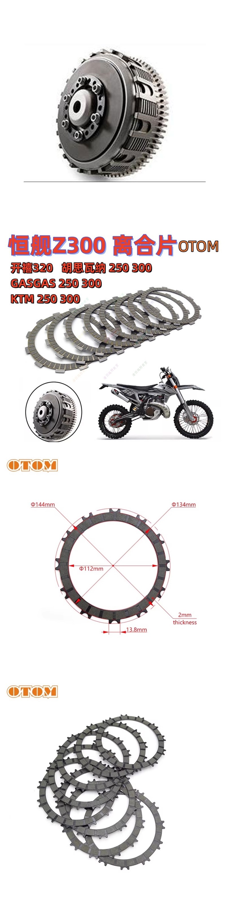 Подходит для сцепления Ktm Husqvarna Gasgas двухтактного сцепления, стальная пластина Hengjian Z300, фрикционная пластина Kaixi 320