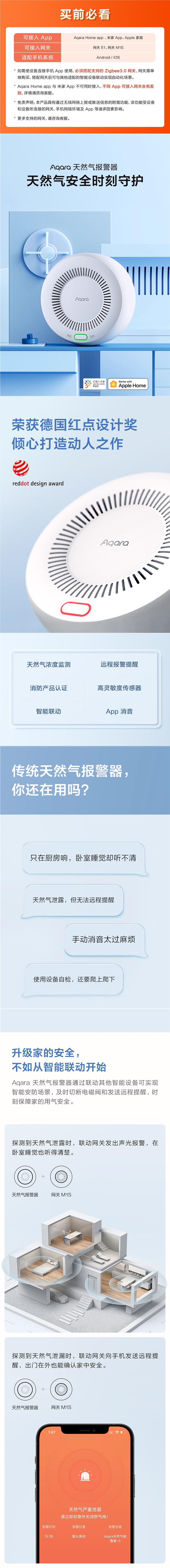 Умная сигнализация природного газа Aqara Green Rice Lianchuang, подключена к Mijia Homekit, защита от горючих газов