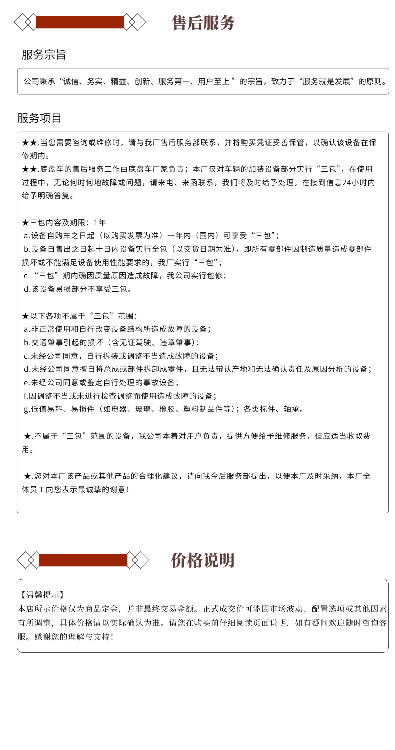 底盘配置:大运4100轴距底盘,1995奥普力排半,中德合资德威云内D40TCIF1(云内183),法士特八档变速箱,1118(9T)后桥、825R20轮胎(选装9.00R20轮胎加1000元),230局部三层大梁,ABS、电动空调、电动门窗+遥控中控门锁、MP3、排气制动、200L铝合金燃油箱。