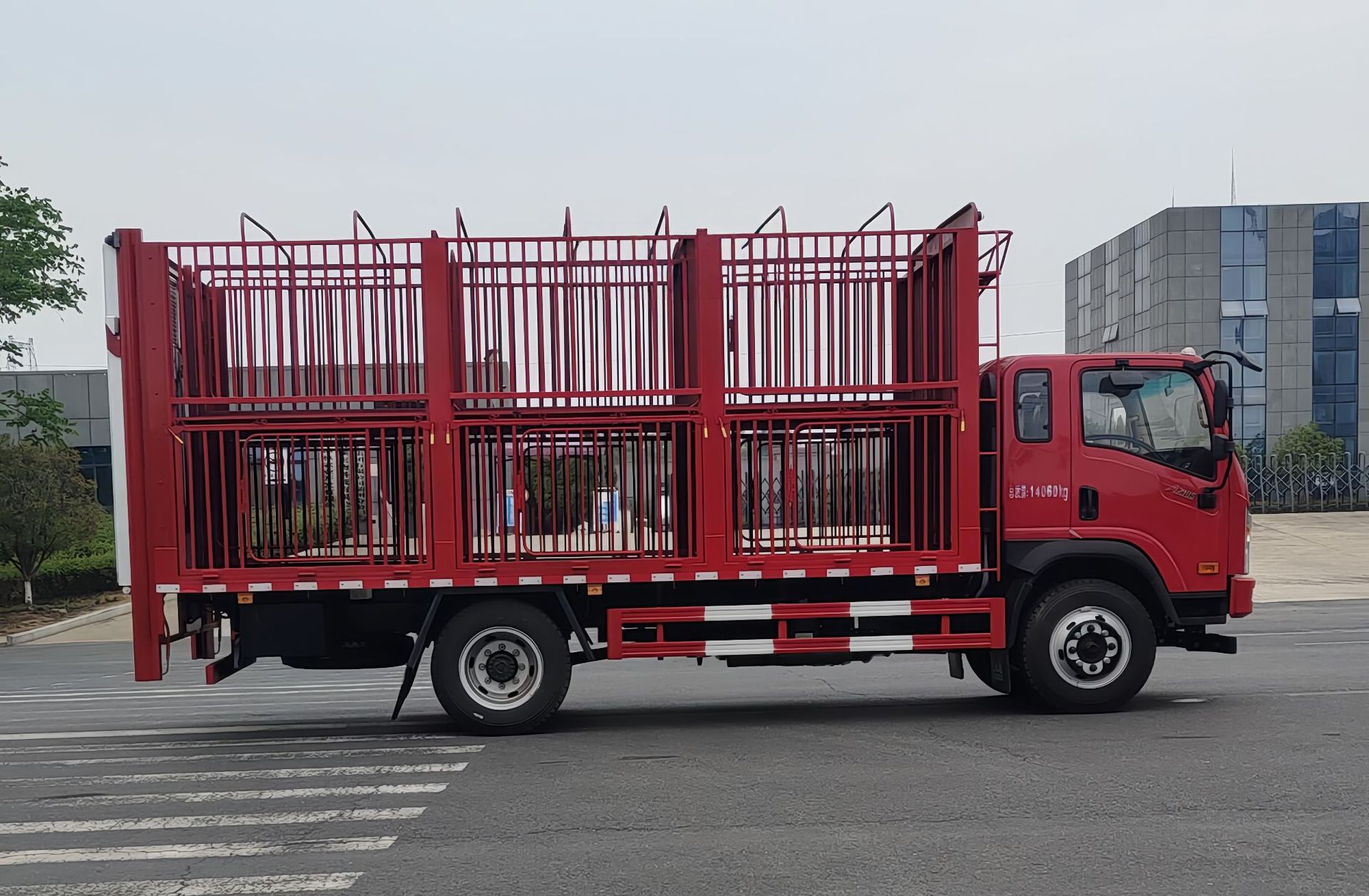 车厢配置:箱体两层结构,可选做3层,每层6个隔笼,一层底板3mm碳钢花纹板,二层底板为镀锌冲孔板,尾部可加装液压升降装卸猪尾板。箱体多层结构、隔笼分配、液压尾板可根据实际需求选择。