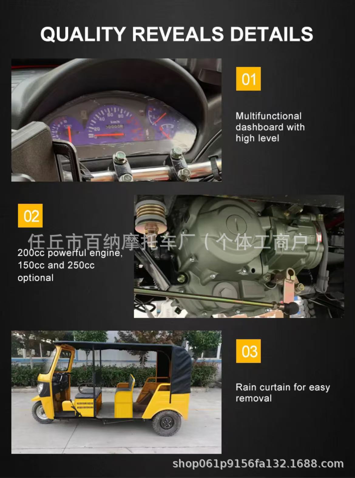 Трехколесный мотоцикл с бензиновым двигателем, многоместный, с мягким и жестким верхом