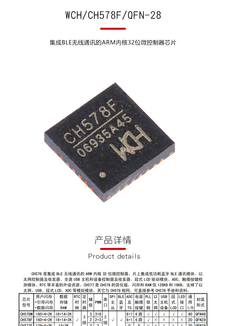 Оригинальный чип Ch578F Qfn-28, интегрированный BLE, 32-битный микроконтроллер с ARM Core