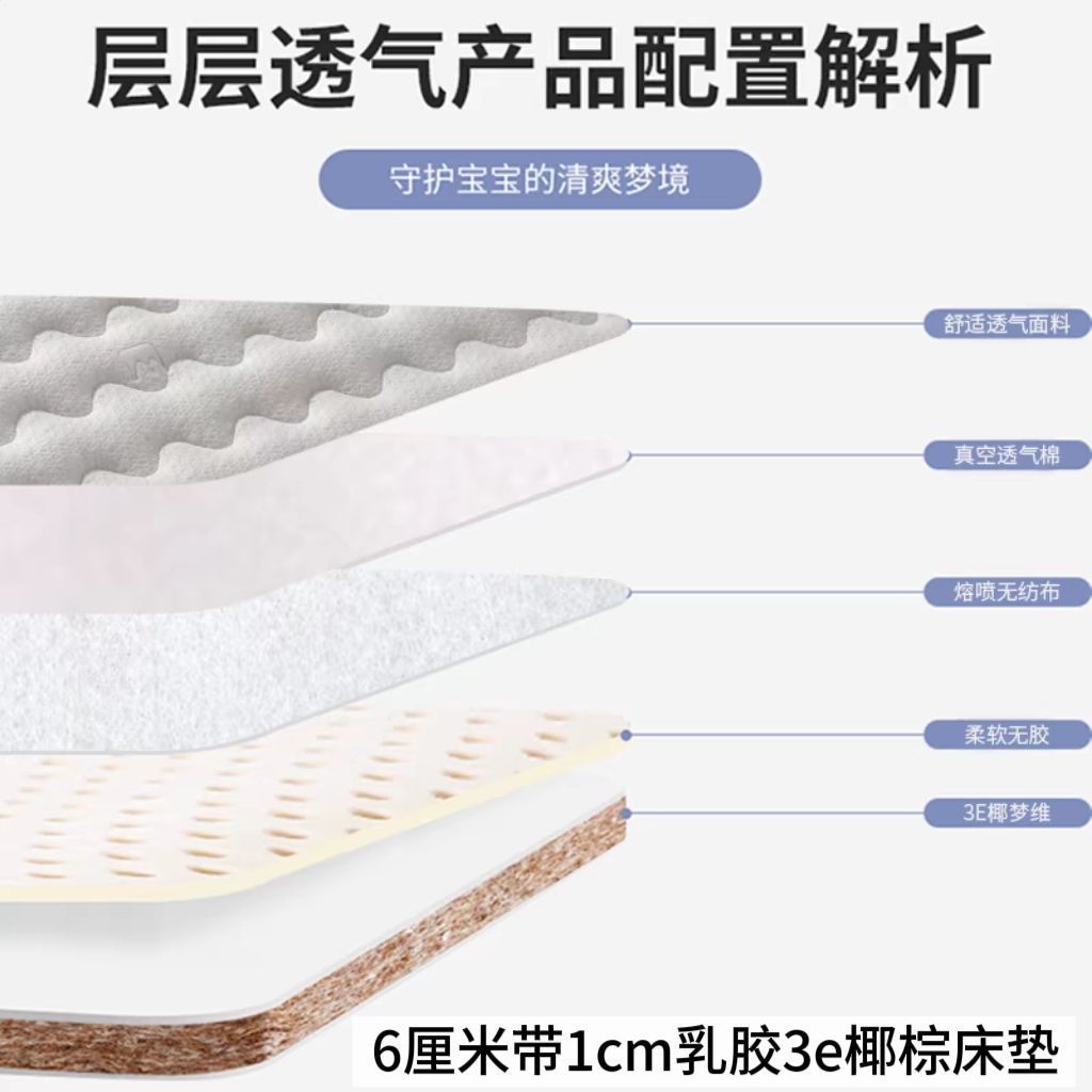 Экологически чистый матрас E0 класса 3E из кокосовой пальмы, латексный, для новорожденных, без формальдегида, съемный и washable, жесткая защита позвоночника