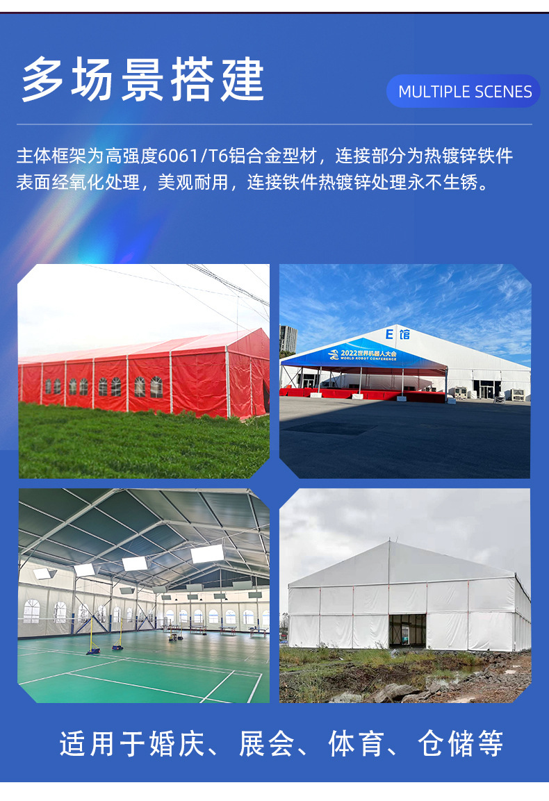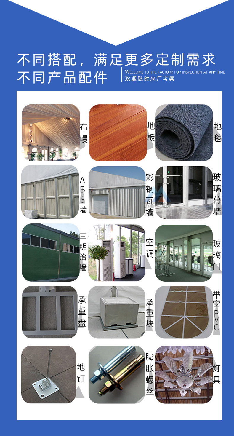 5、高度集成化: 篷房具有很多配件配套,安全实用