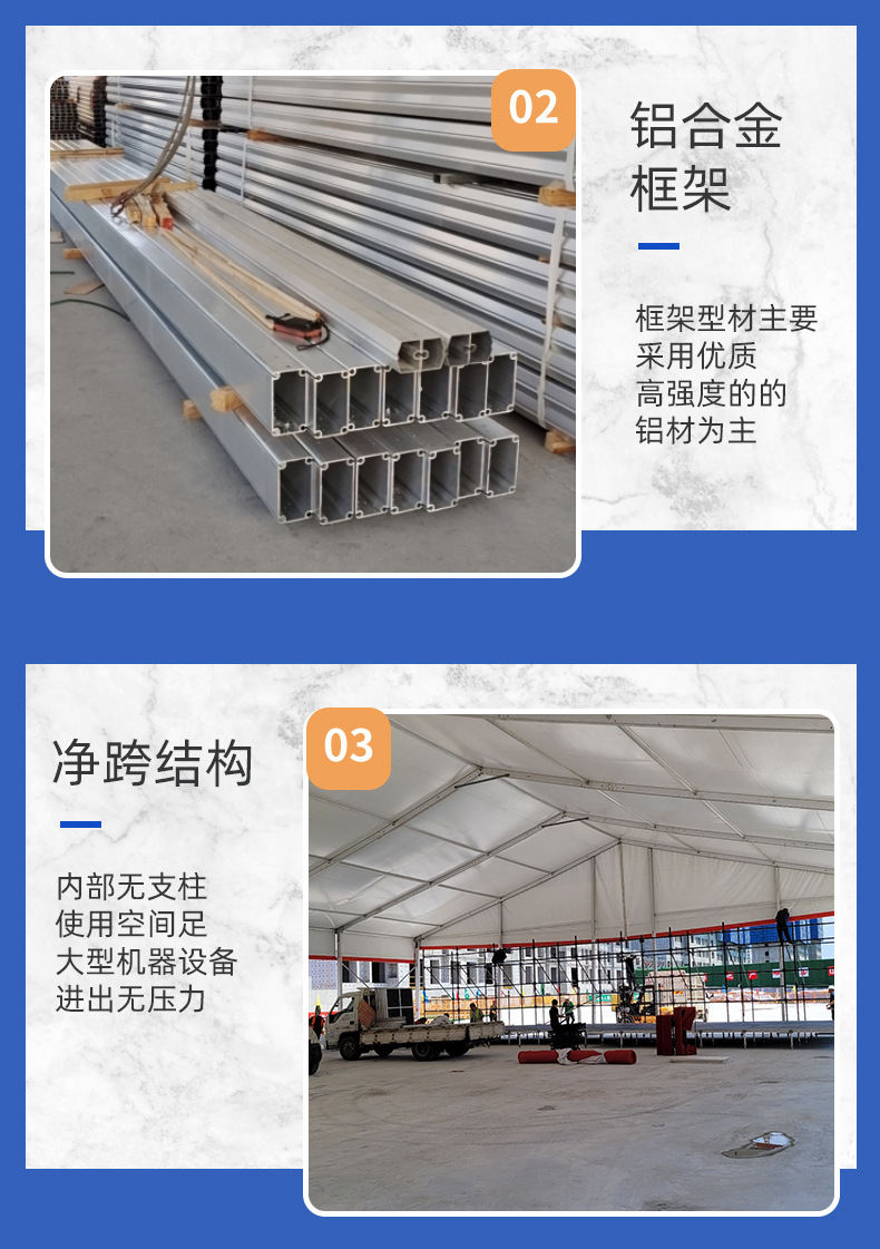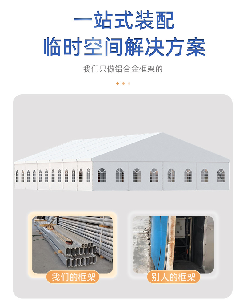 1、快速搭拆: 篷房随搭随拆,轻松解决空间扩容问题