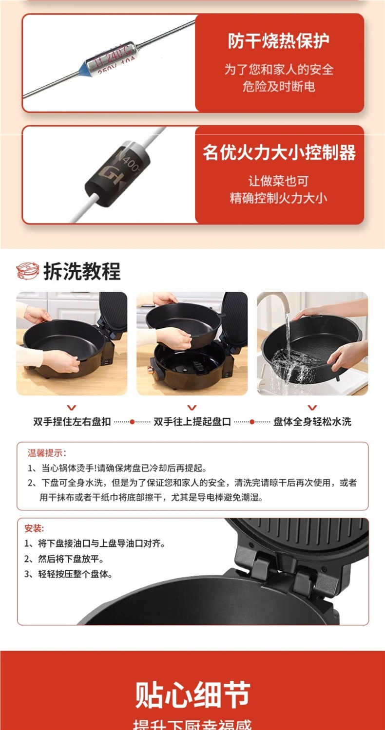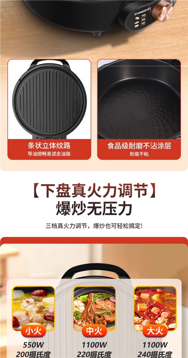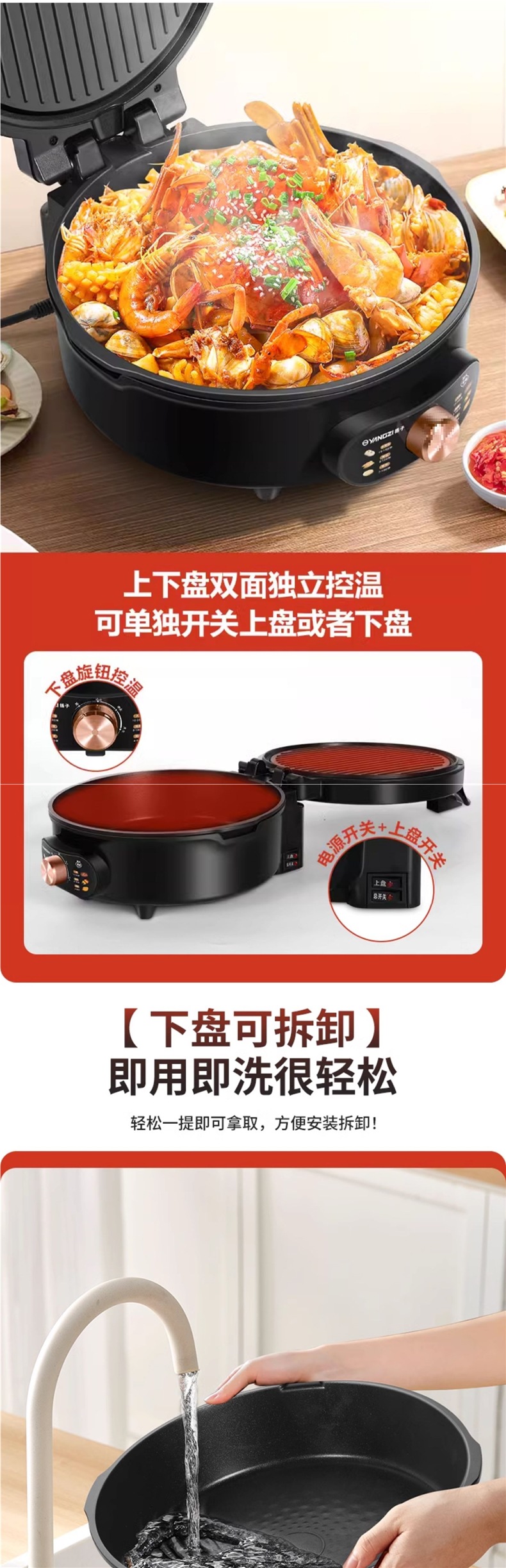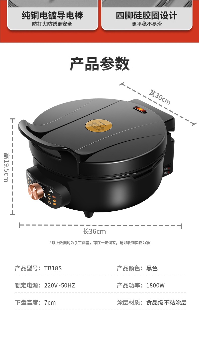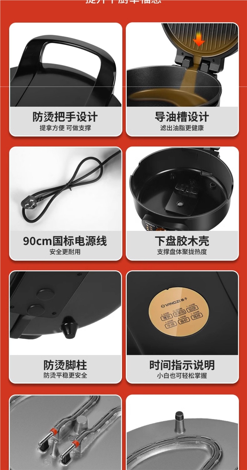 Электрическая блинница Yangzi, домашняя, с двойным обогревом, углубленная и увеличенная, новая, съемная и моющаяся