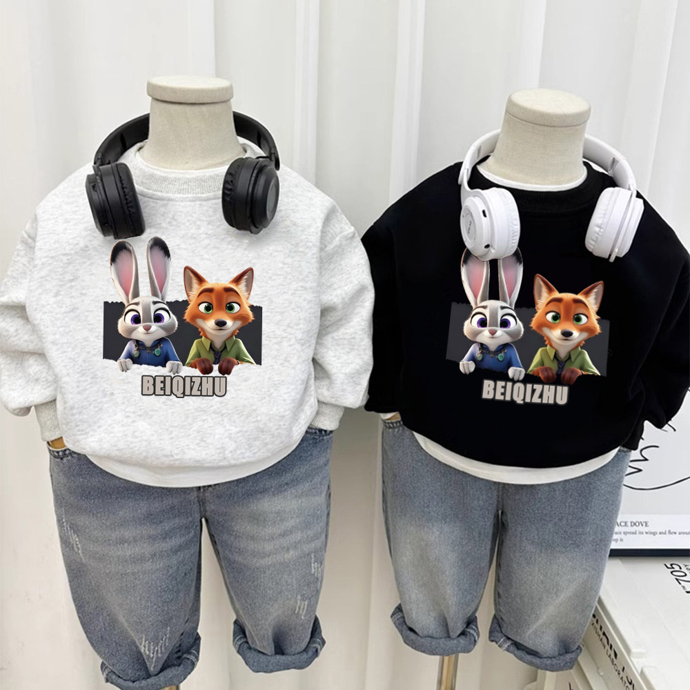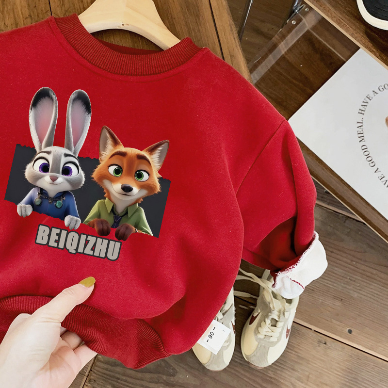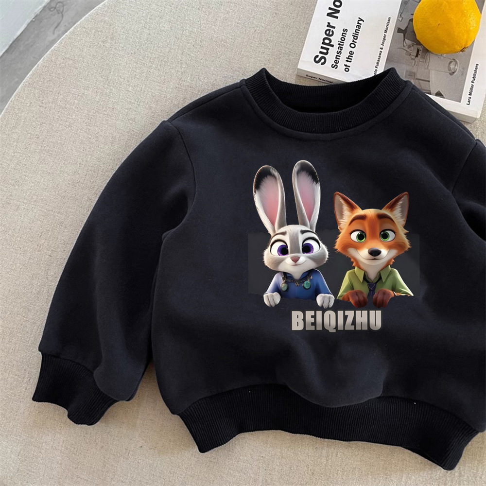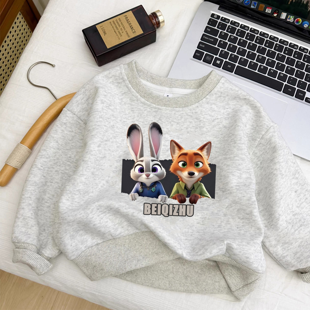 Толстовка с флисовой подкладкой для мальчиков и девочек, новая модель осень-зима 2026, мультфильм Зверополис, повседневный теплый топ