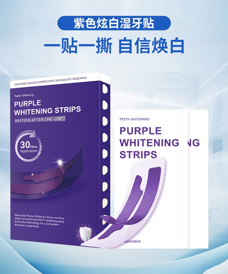Кросс-бордерные новые V34 фиолетовые полоски для отбеливания зубов, удаление пятен и зубного камня, фиолетовые полоски для отбеливания зубов