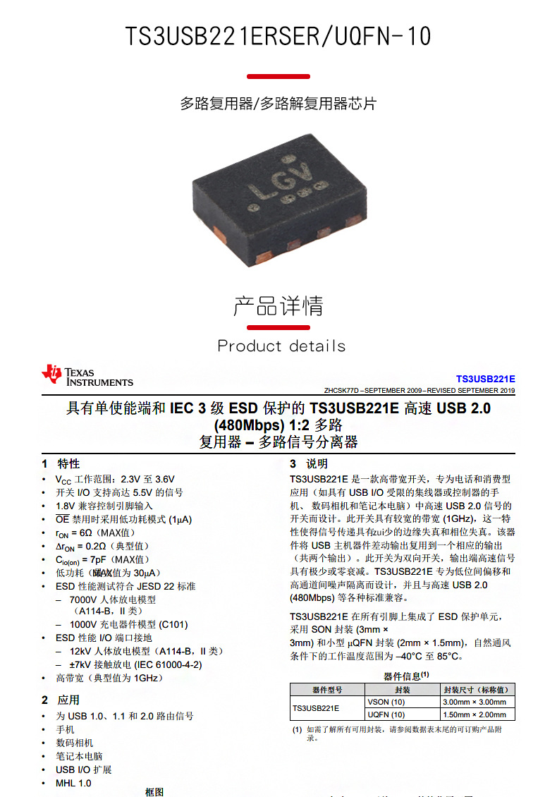 Оригинальный подлинный Ts3Usb221Erser Uqfn-10 мультиплексор/демультиплексор чип
