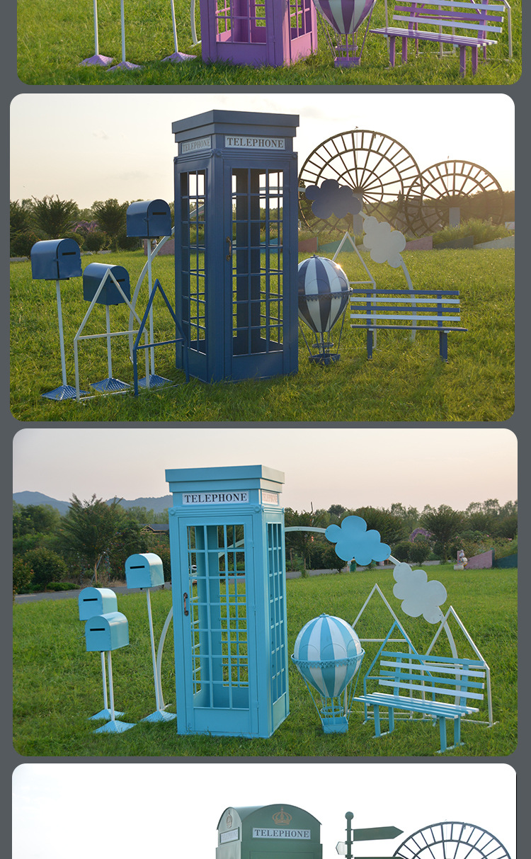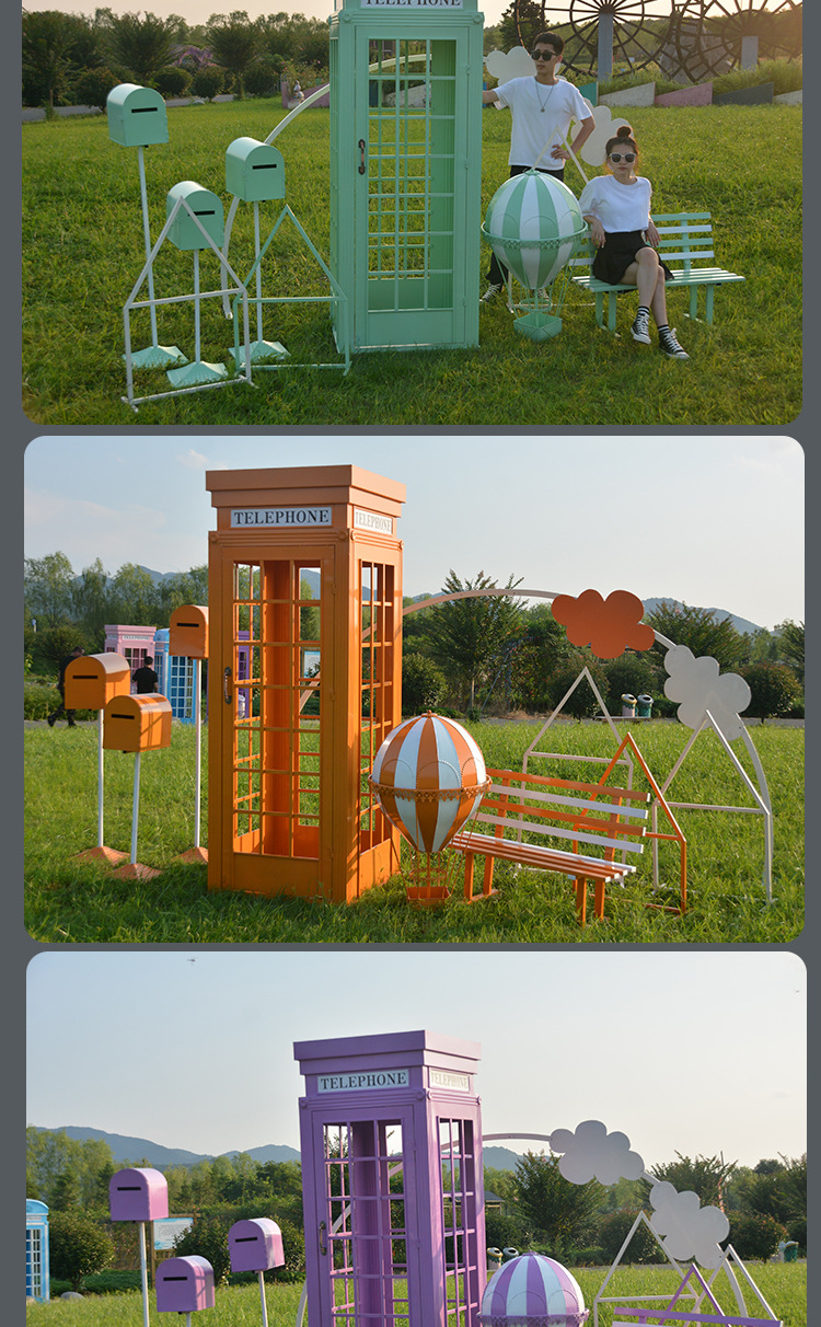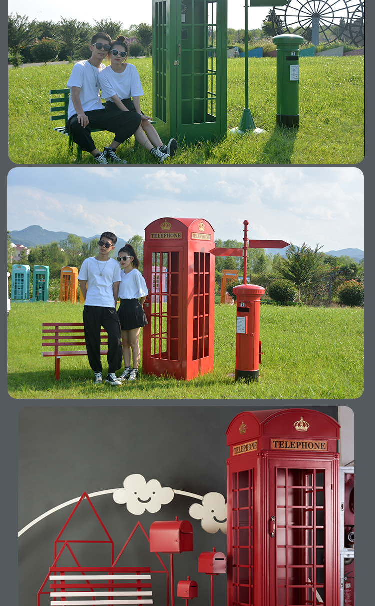 Кованая телефонная кабина, книжная кабина, набор интернет-знаменитости, флюгер, почтовый ящик, наружные водонепроницаемые украшения, мягкие декоративные реквизиты