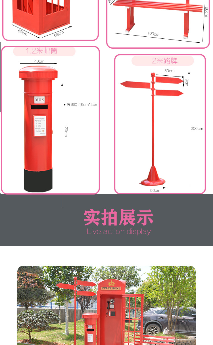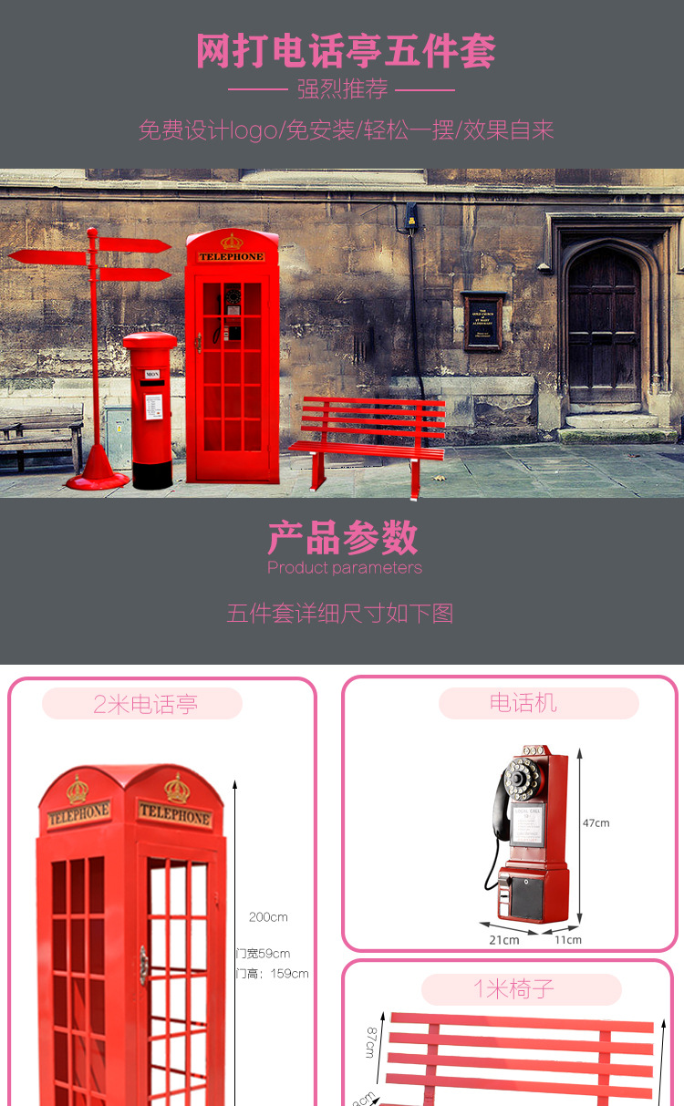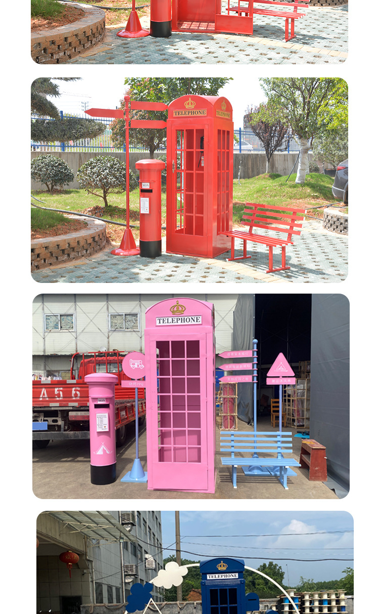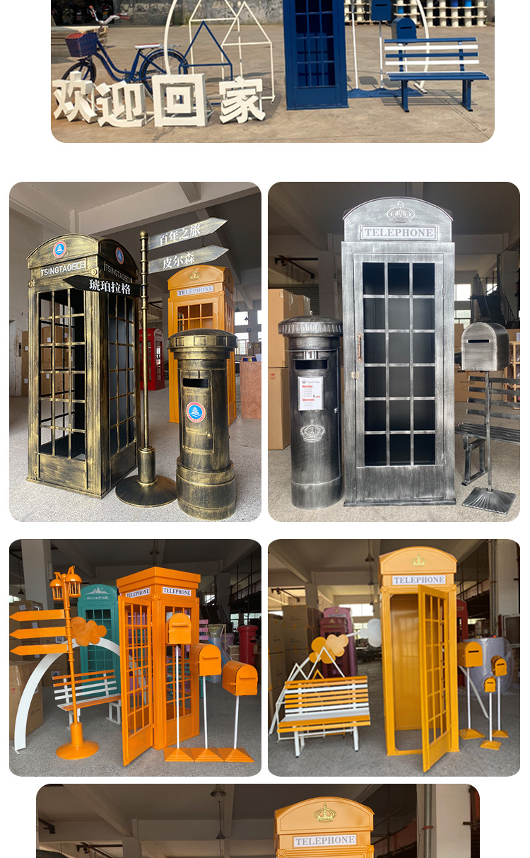 Кованая телефонная кабина, книжная кабина, набор интернет-знаменитости, флюгер, почтовый ящик, наружные водонепроницаемые украшения, мягкие декоративные реквизиты