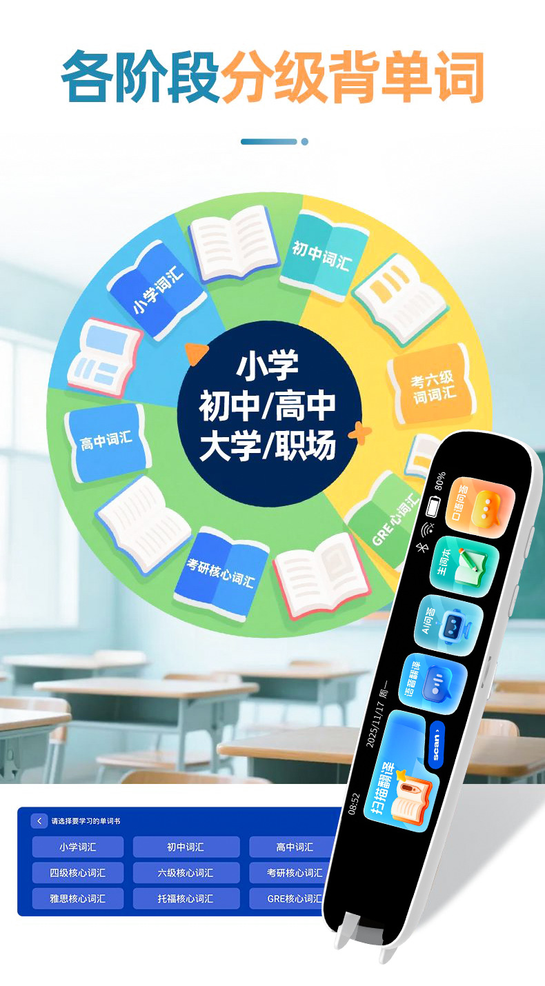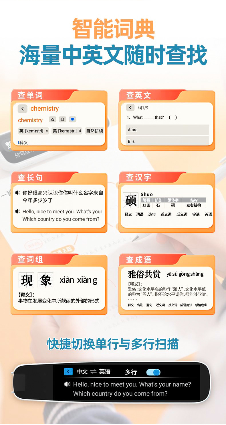 Читающая ручка, многофункциональная универсальная переводная ручка для учеников начальной, средней и старшей школы, портативная ручка для сканирования словаря