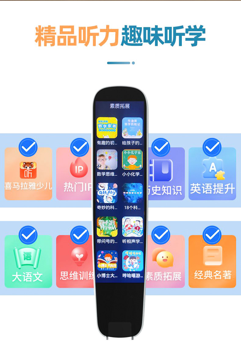 Тип контента точечного чтения Ancient chinese dictionary, Xinhua dictionary, Picture book reading, Course synchronization, Youth english, Oxford advanced learner's dictionary 10, College entrance examination (postgraduate entrance exam vocabulary/toeic/toefl/tem-4/tem-8 english core vocabulary), High school & college entrance exam (core vocabulary/phrases/listening comprehension), Primary school exam (ket/pet/primary school english vocabulary), Workplace exams (cambridge business english bec elementary/intermediate/advanced vocabulary)