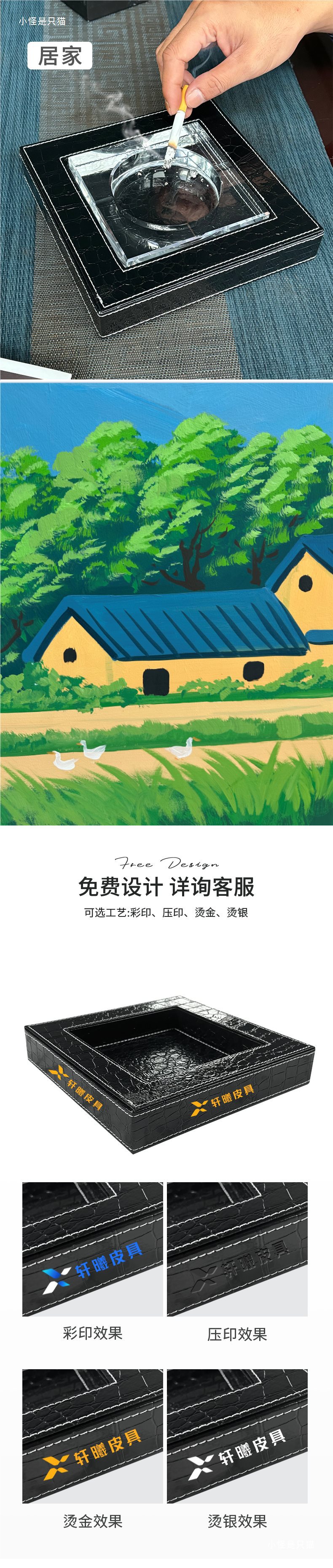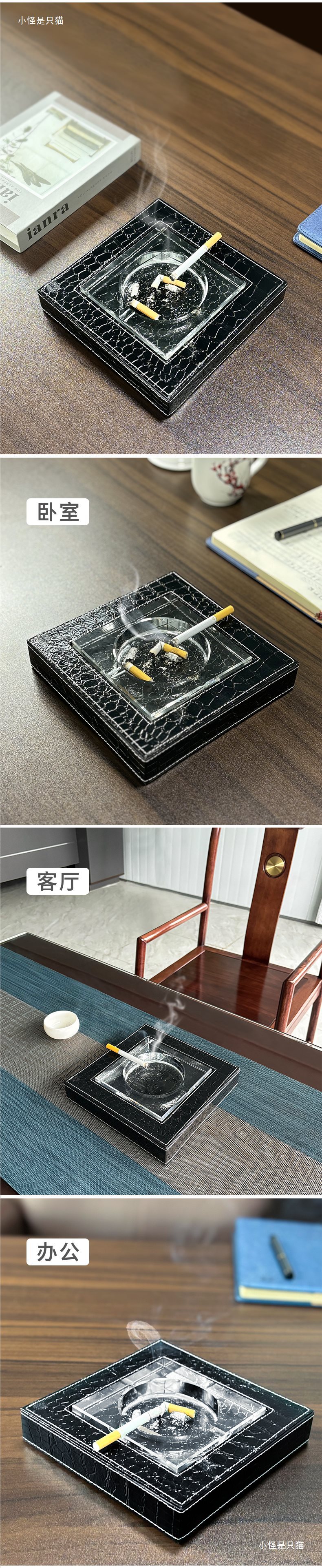 Пепельница из PU кожи, модная, креативная, большая, кристаллическая цилиндрическая стеклянная пепельница, подарок для дома, офиса, бизнеса, слот для сигарет