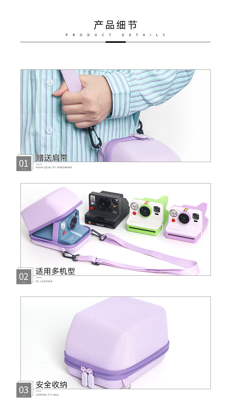 Подходит для Polaroid, универсальная косметичка с текстурой фиолетовой ткани, защитный жесткий чехол из EVA