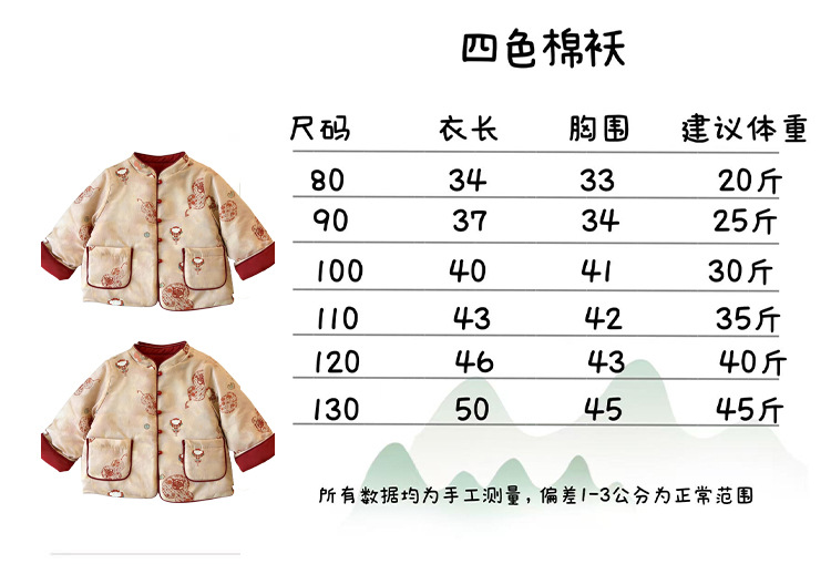 ![]() | Double-sided cotton-padded jacket for instant blessings (actual product is more apricot pink) | 120cm | 1шт: ¥49.90 | 1 | 6023522257438 | |