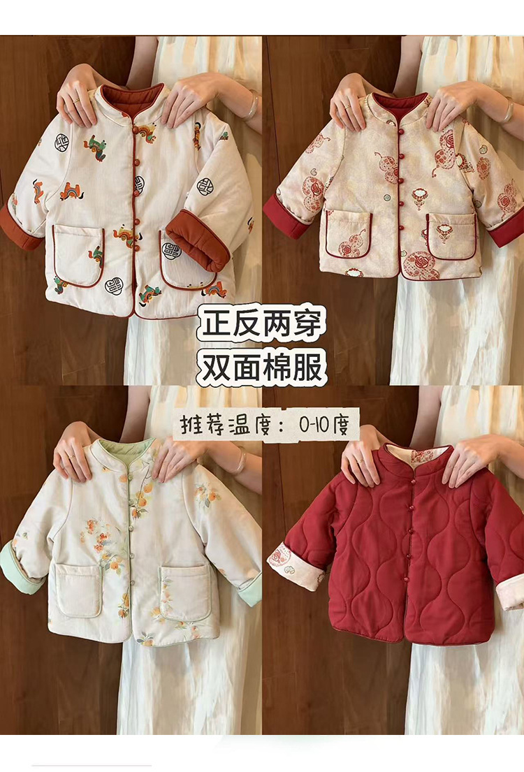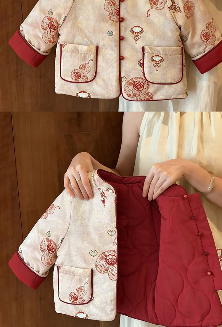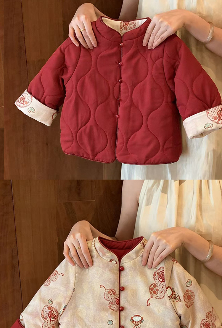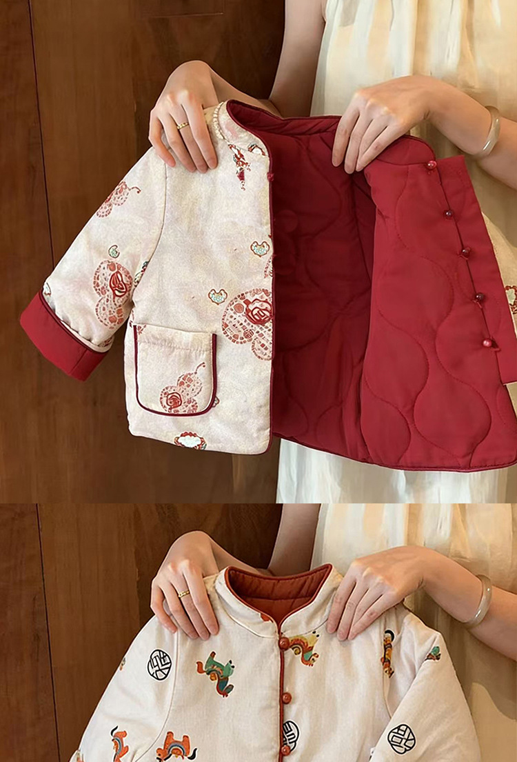 Куртка для мальчиков и девочек с утеплителем, зимний красный хлопковый костюм, реверсивный, новогодние поздравления, китайский стиль, зимняя куртка для детей