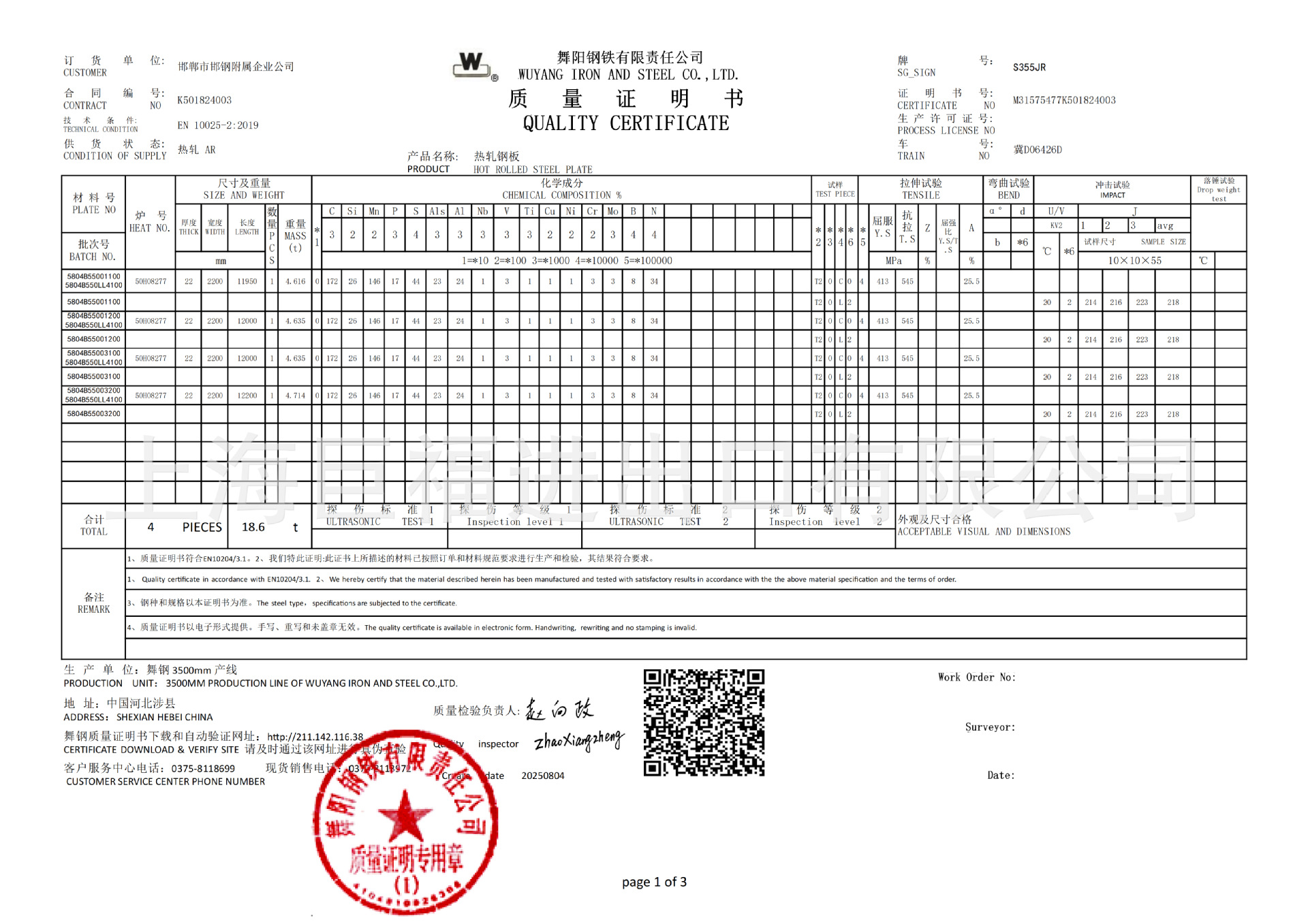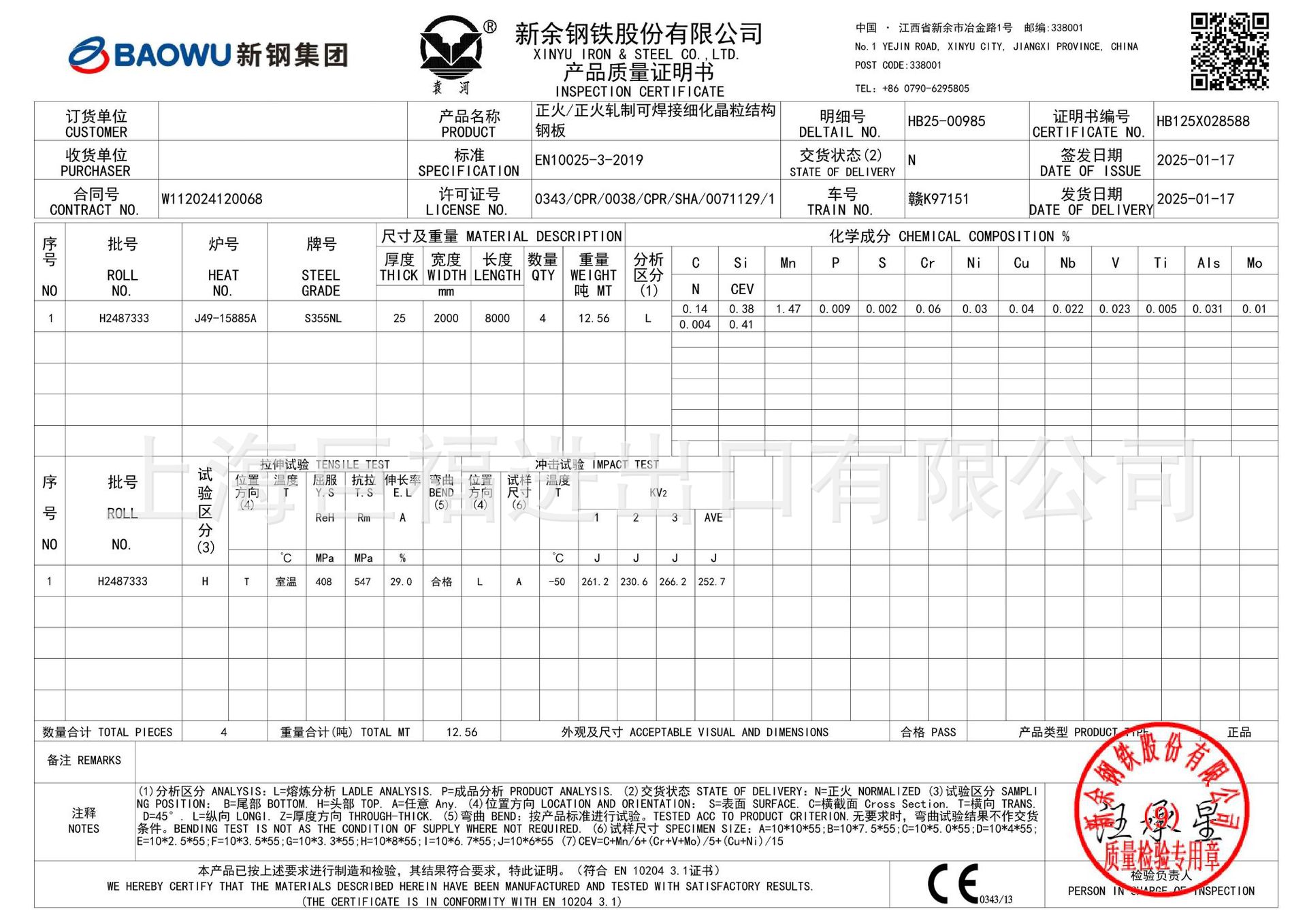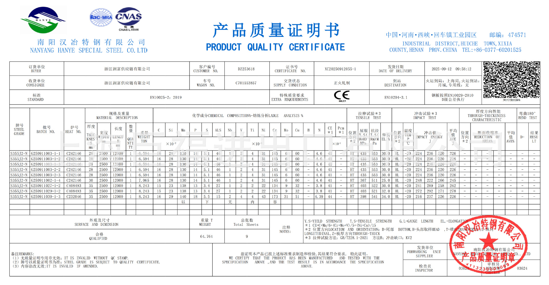 Эта стальная плита европейского стандарта S355J2+N доступна в размерах 38*2500*12000 и других спецификациях с сертификатом 3.1 CE