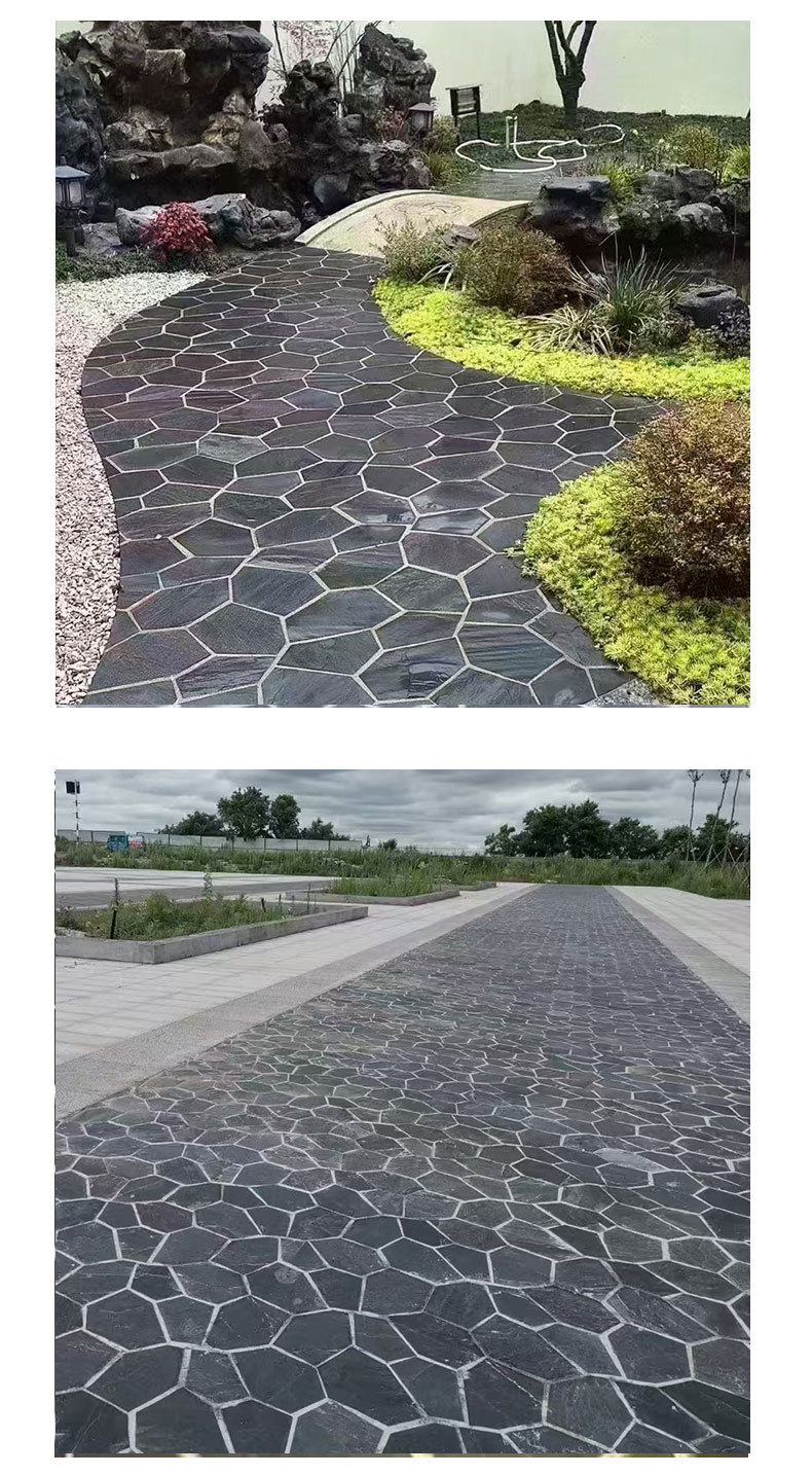 Кастомизированный черный ледяной трещиноватый культурный камень для уличной террасы, нерегулярная каменная сетка, винтажный садовый тротуарный камень