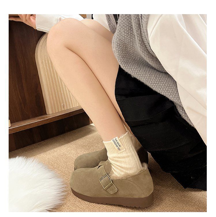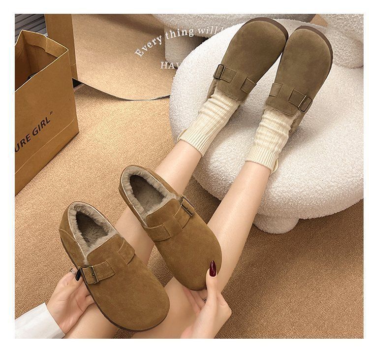 Плюшевые ретро туфли для женщин, зимние 2025, новые хлопковые туфли, теплые зимние ботинки