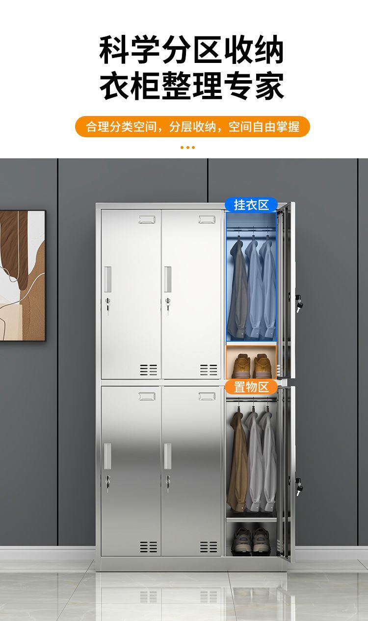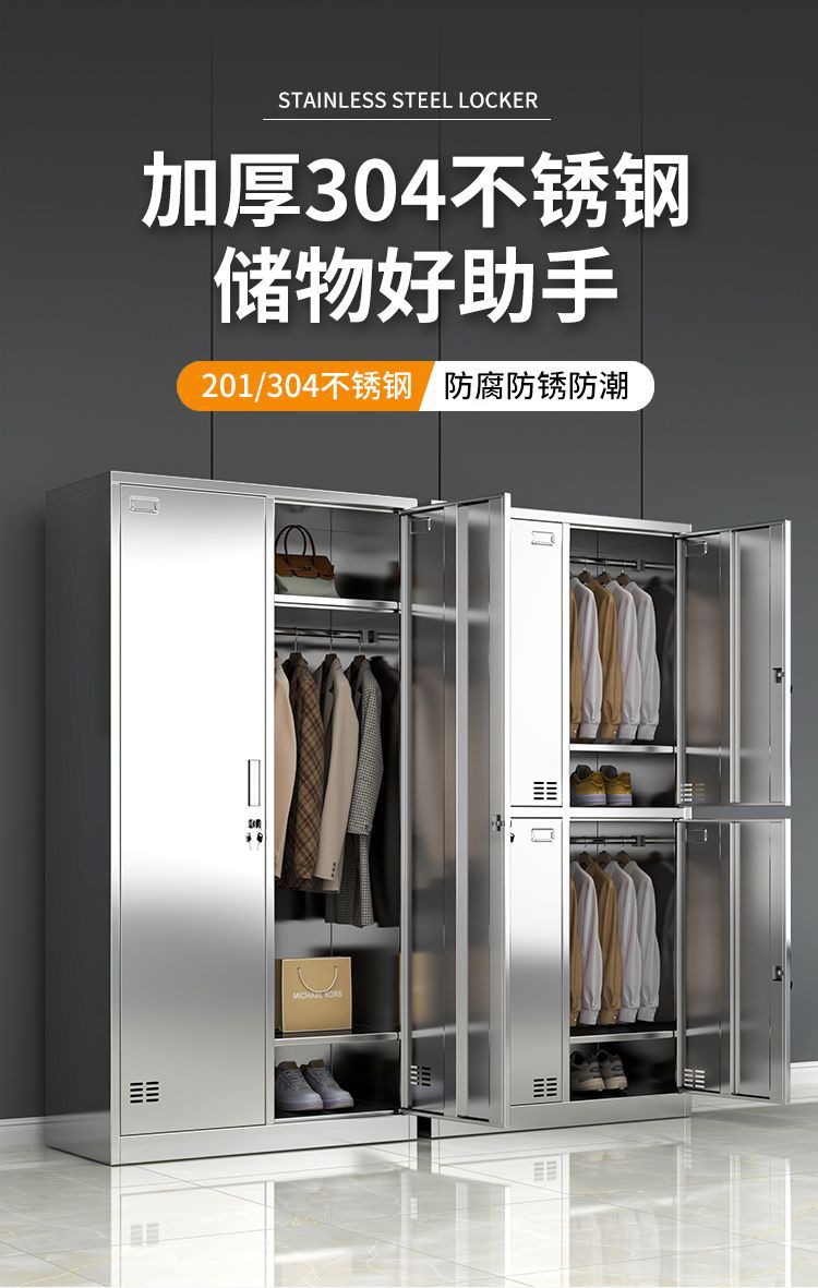Шкаф из нержавеющей стали 304, шкаф для сотрудников с замком, многодверный шкаф для обуви, шкаф для столовой с несколькими отделениями