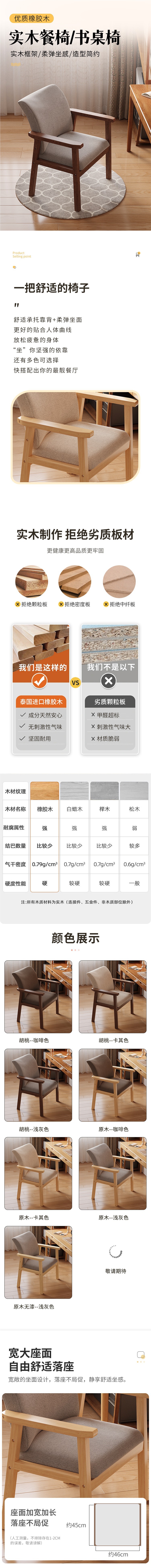 Стул из массива дерева с подлокотниками, учебный стул, стул для гостиной и офиса