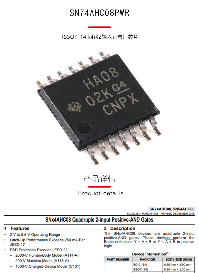 Оригинальный чип Sn74Ahc08Pwr Tssop-14, четырехканальный, 2-входной положительный логический элемент