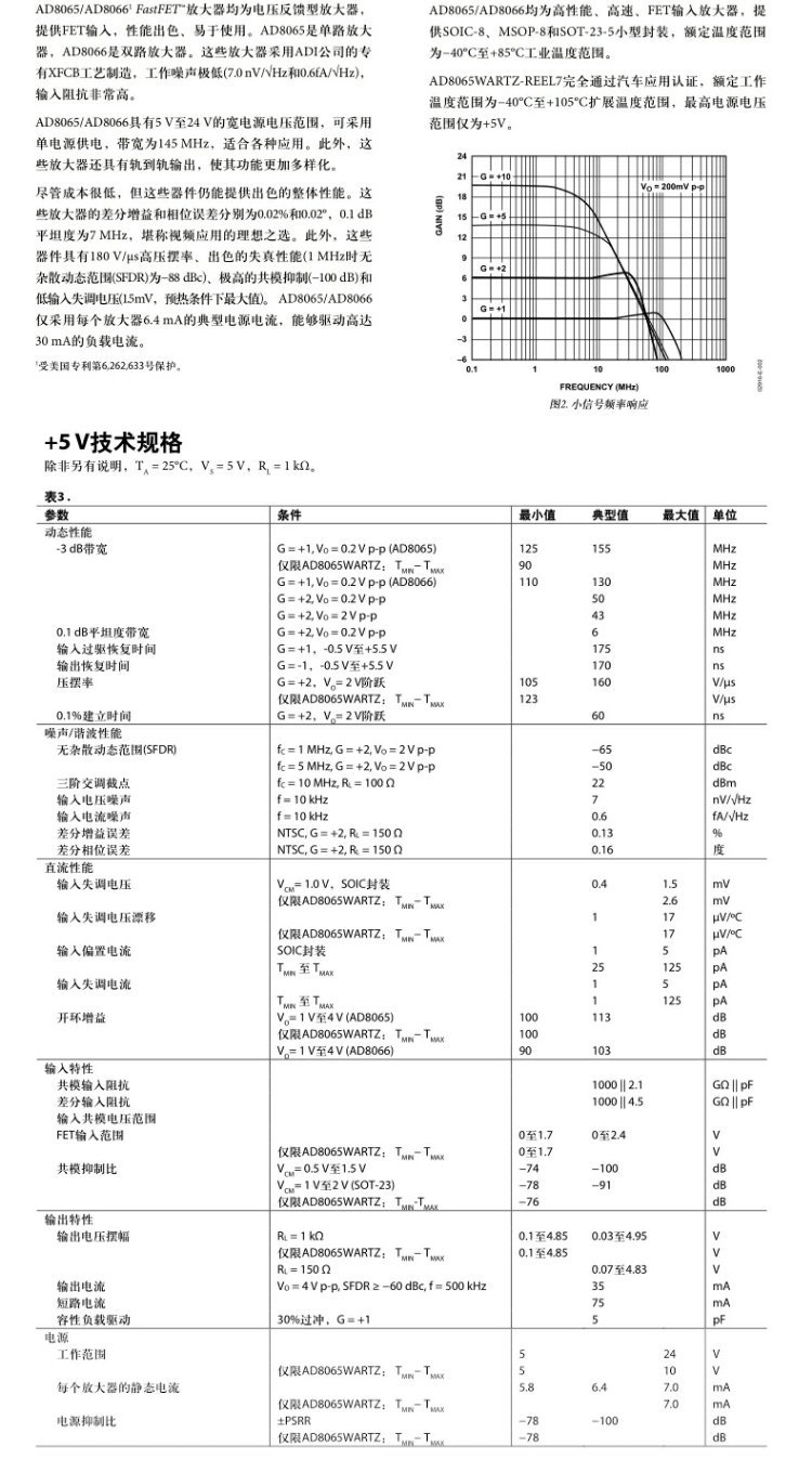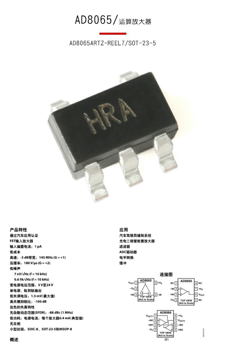 Оригинальный подлинный Ad8065Artz-Reel7 Sot-23-5 высокопроизводительный операционный усилитель 145МГц