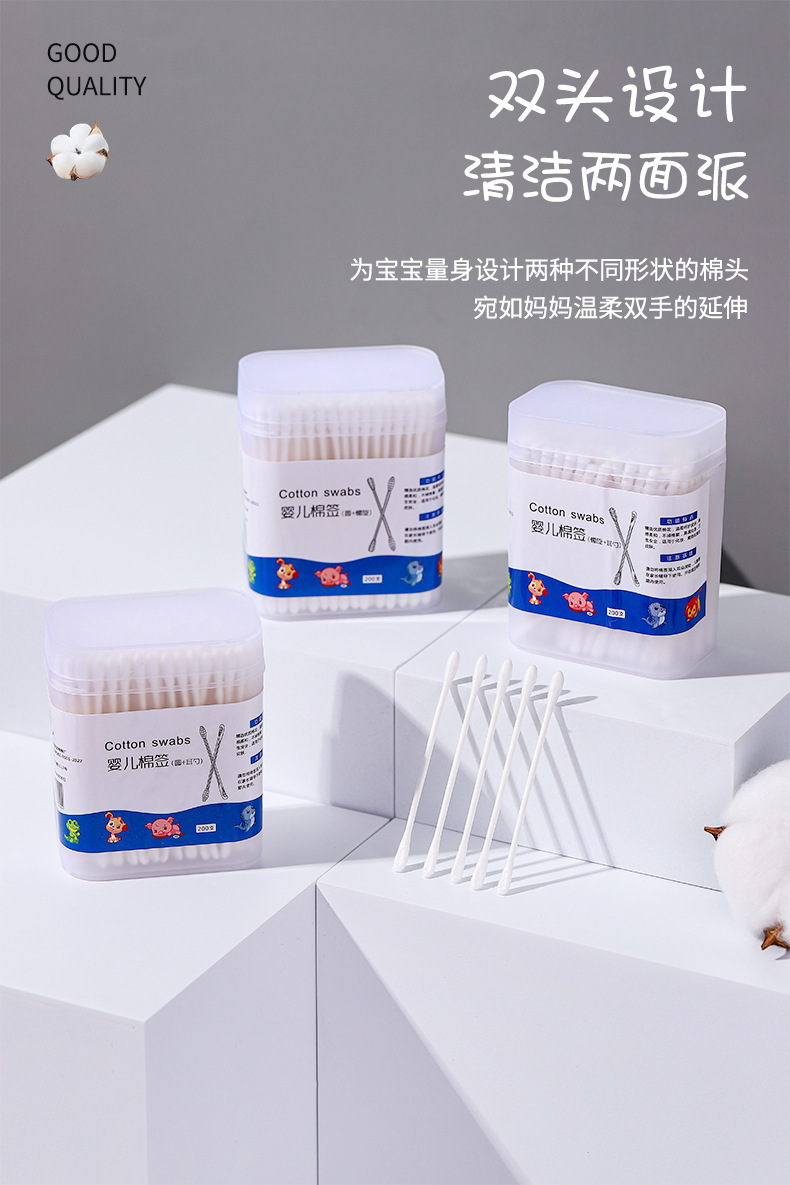 Коробка с ватными палочками для детей, 200 шт. двойные одноразовые ватные палочки с маленькой головкой