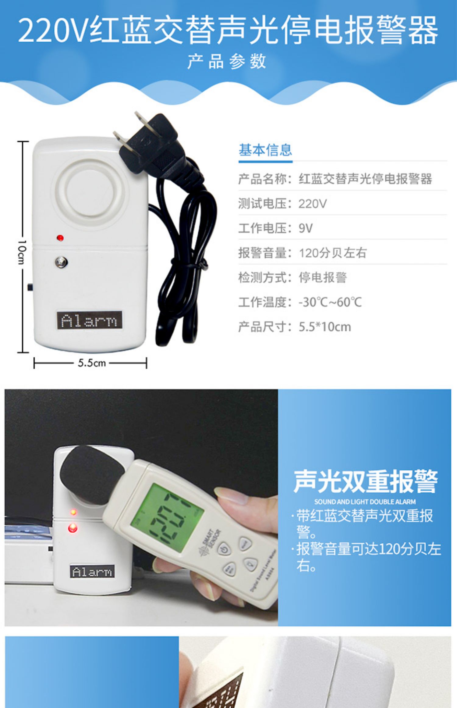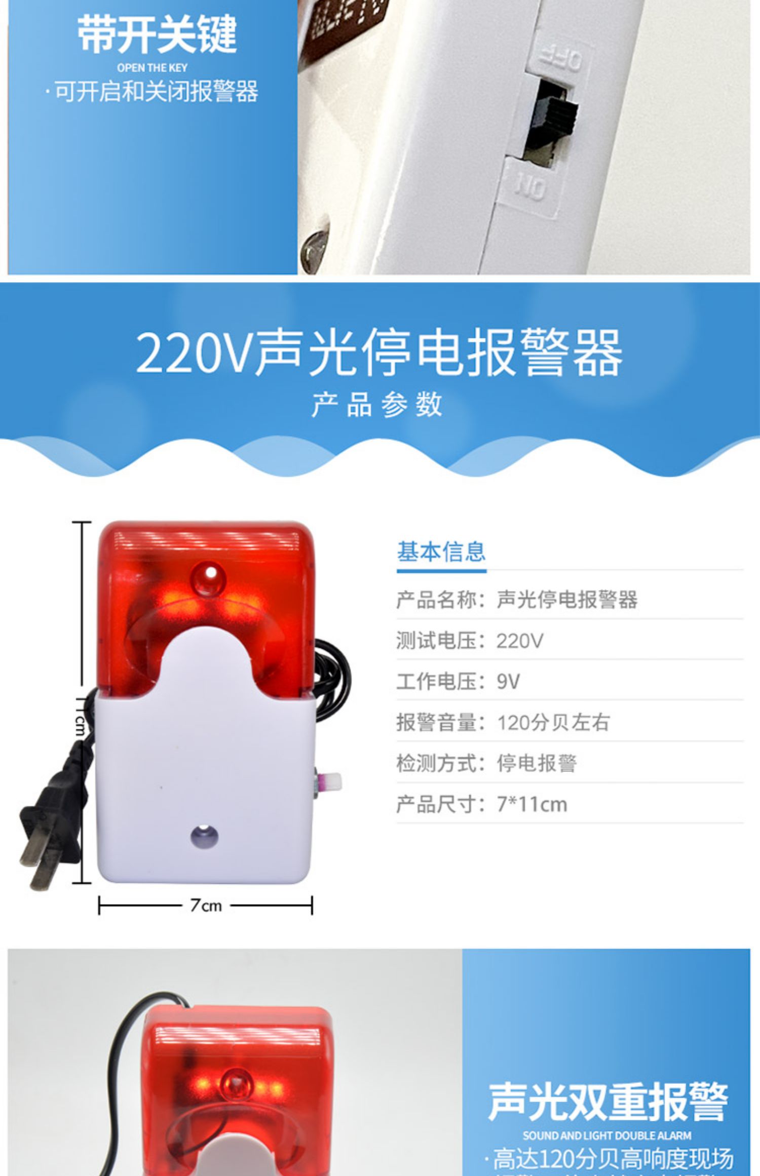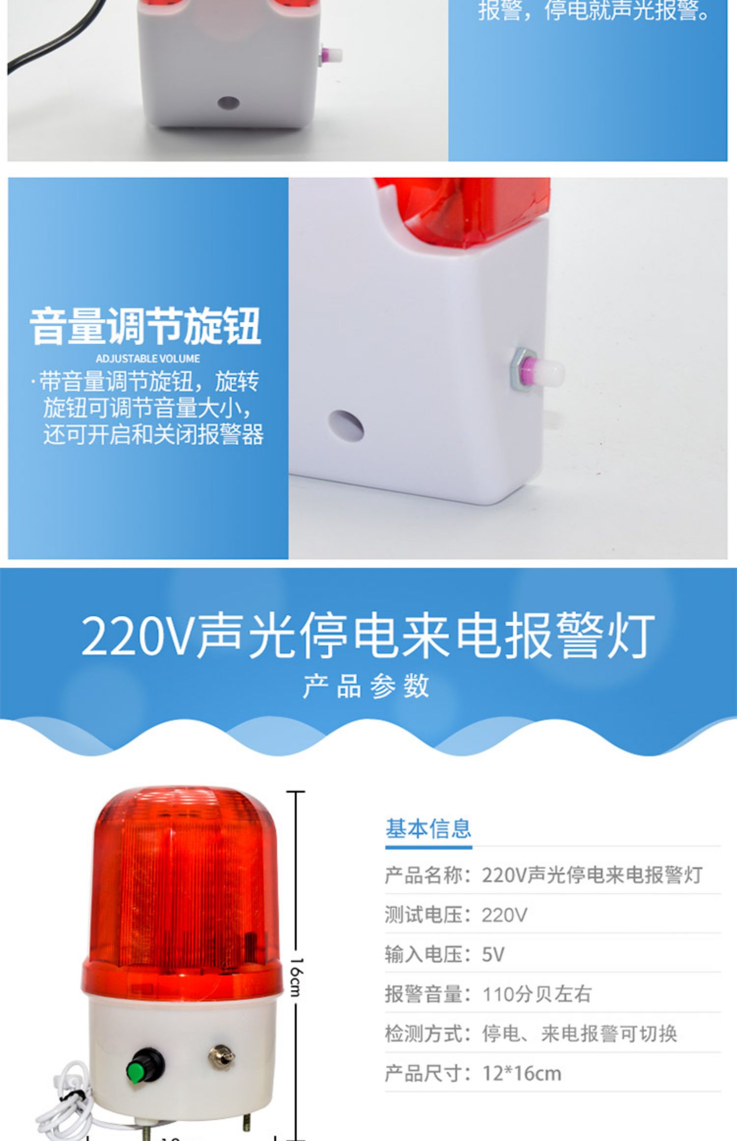📦 | 220v power outage sound and light alarm adjustable built-in battery volume adjustable sound and light alarm | ¥26.1 / ≈ 314 ₽ | 346 | 6151941503177 |