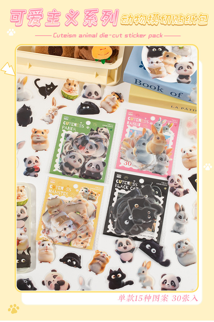 通过网盘分享的文件:4语闲 可爱主义动物模切pet贴纸包30枚 4款