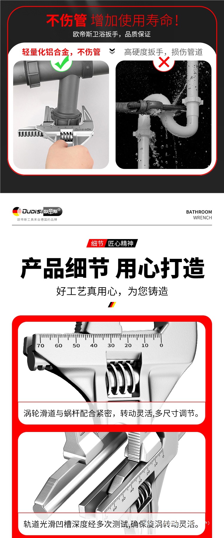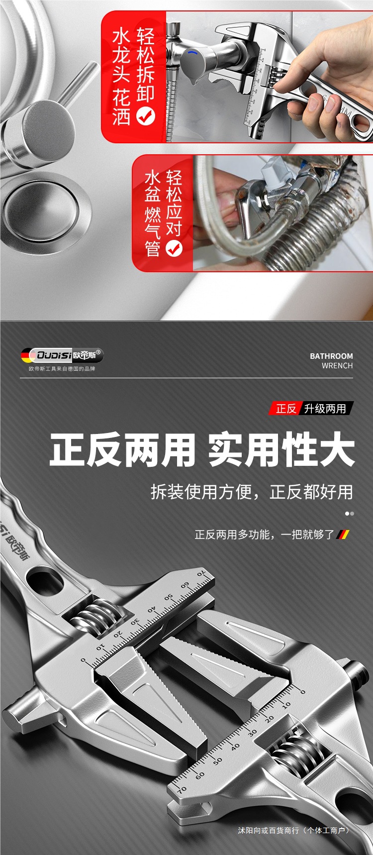 Сантехнический ключ для ванной, многофункциональный инструмент для установки, короткая ручка, ключ с большим отверстием для крана и раковины