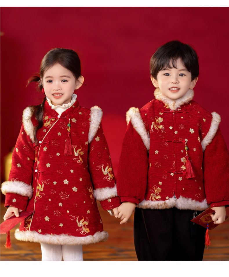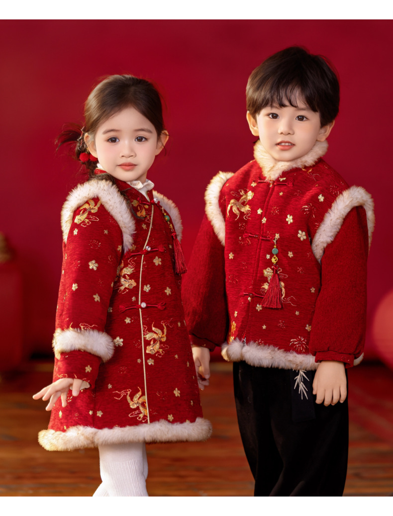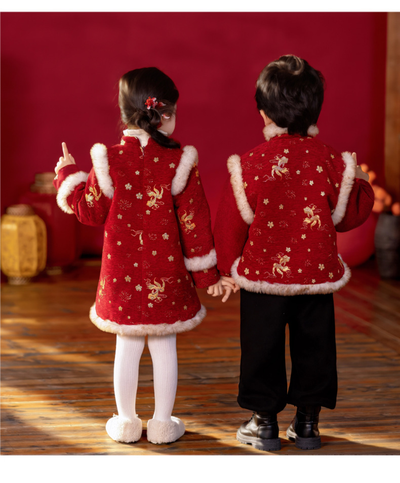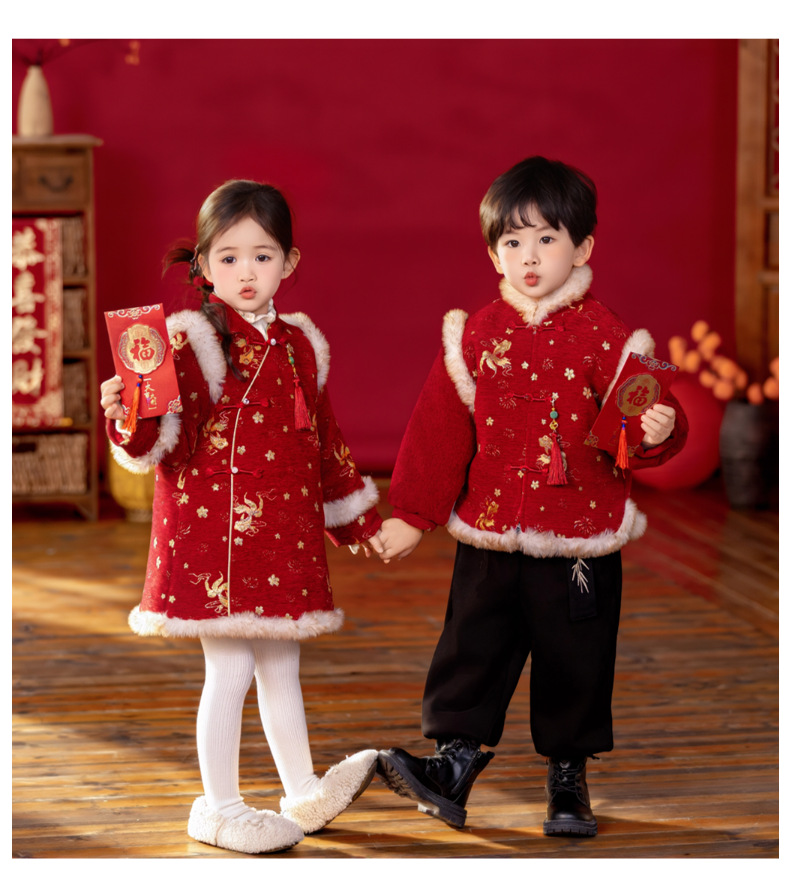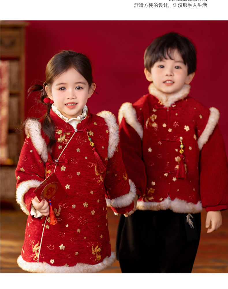 Праздничный наряд Ханьфу для детей, комплект для брата и сестры, зимний 2026, традиционный костюм для выступлений для девочек, новогодняя одежда для мальчиков